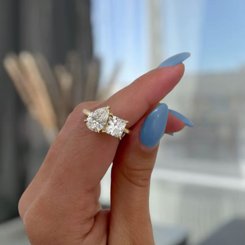 แหวนเพชรทรงลูกแพร์และทรงปรินเซส 1.50 กะรัต เพาะเลี้ยงในห้องปฏิบัติการ ดีไซน์ Toi et Moi สำหรับผู้หญิง ทองคำแท้ 14K ของขวัญวันครบรอบสุดหรูสำหรับคู่รัก