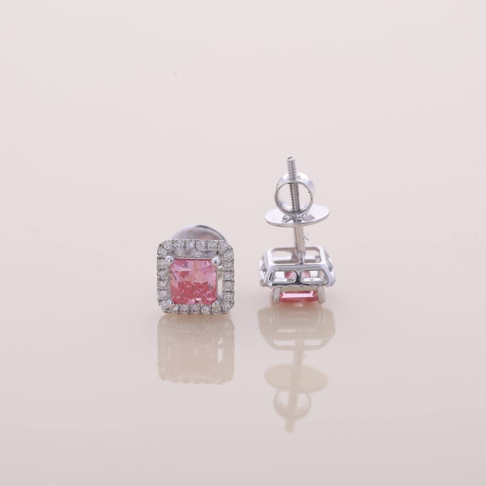 ต่างหูเพชรทรงเจ้าหญิงสีชมพู 1.51 กะรัต แบบ Halo ฝังเพชร 14K ทองคำขาว ทองคำเหลือง ทองคำโรสโกลด์ ชุบโรเดียม หรูหรา ได้รับการรับรองจาก IGI