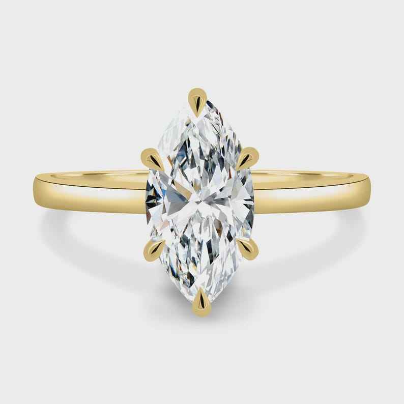 แหวนเพชรทรงมาร์คีส์ 2.02 กะรัต เพาะเลี้ยงในห้องปฏิบัติการ สำหรับผู้หญิง ทองคำแท้ 14K แบบโซลิแทร์ เหมาะสำหรับเป็นของขวัญวันครบรอบแต่งงานสำหรับเธอ