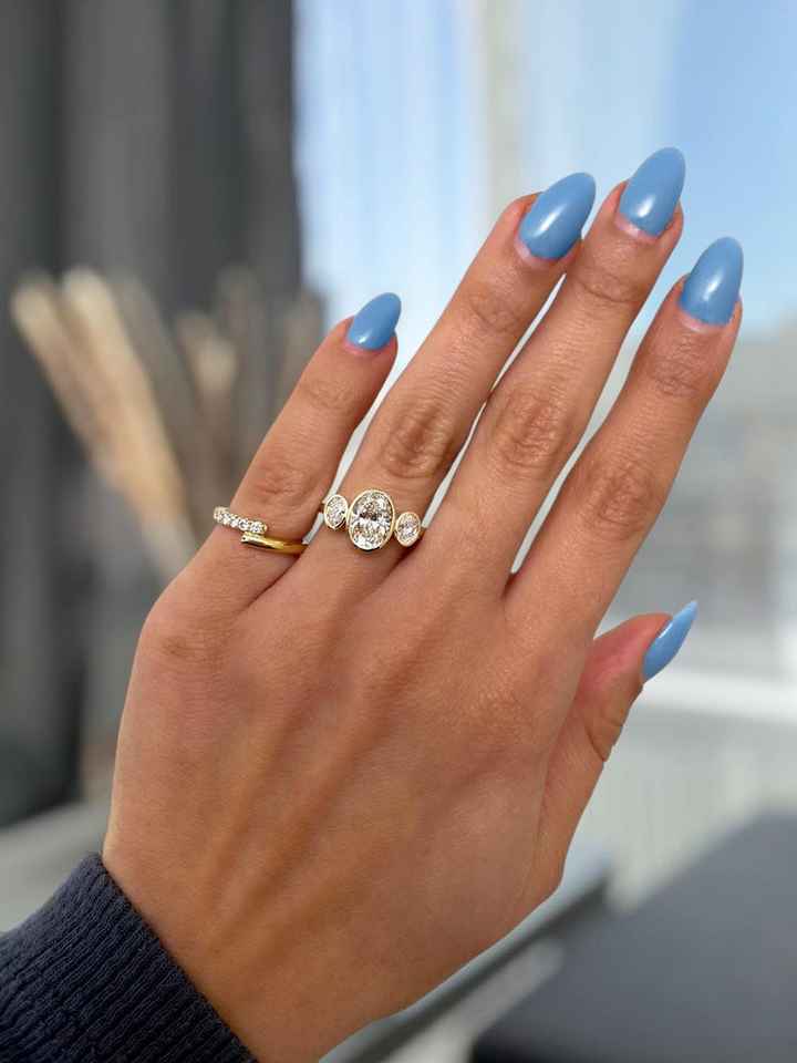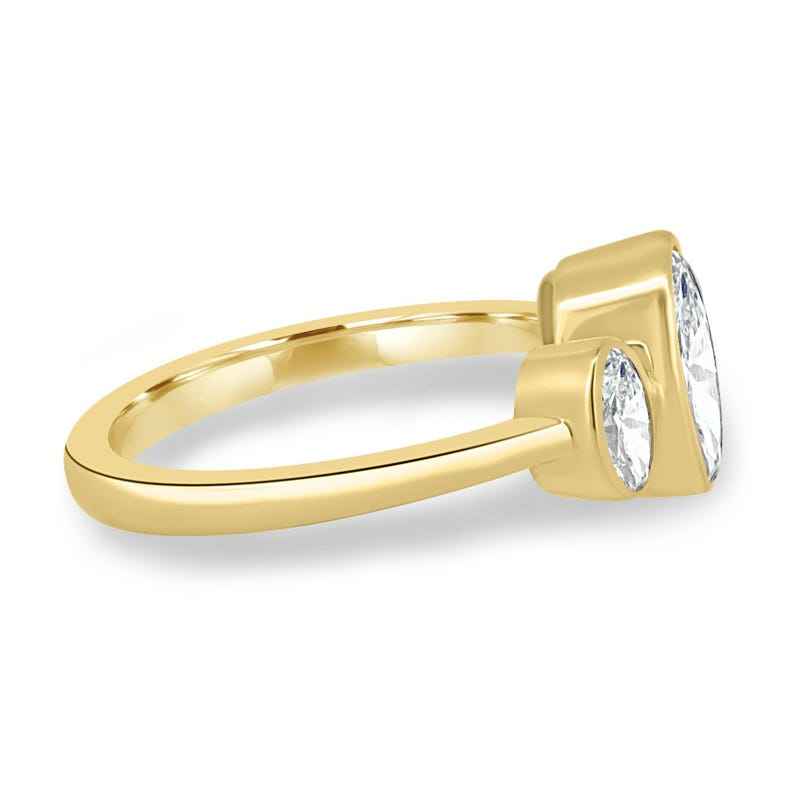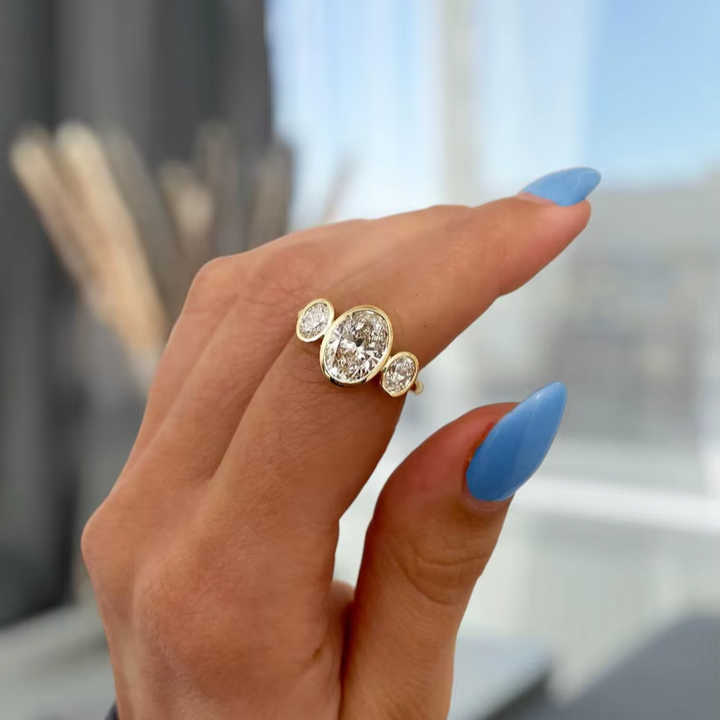 แหวนเพชรทรงรี 2.02 กะรัต แบบสามเม็ด ฝังขอบทองคำแท้ 14K สำหรับผู้หญิง เหมาะสำหรับเป็นแหวนหมั้น ของขวัญแทนคำมั่นสัญญาสำหรับเจ้าสาว