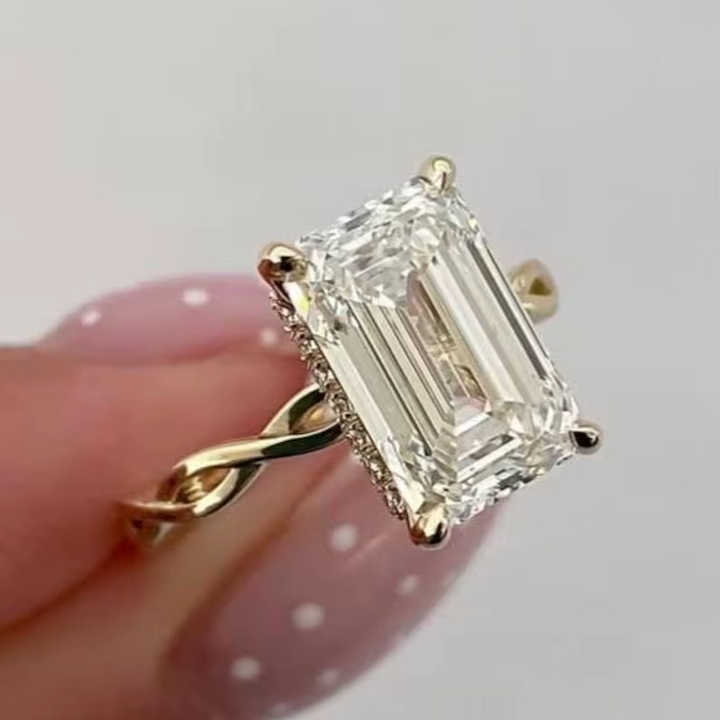 แหวนเพชรทรงเหลี่ยมมรกต 2.02 กะรัต ผลิตในห้องปฏิบัติการ ดีไซน์วงแหวนบิดเกลียวประดับเพชรเม็ดเดี่ยว โรแมนติก สำหรับผู้หญิง ทองคำแท้ 14K ของขวัญวันครบรอบ