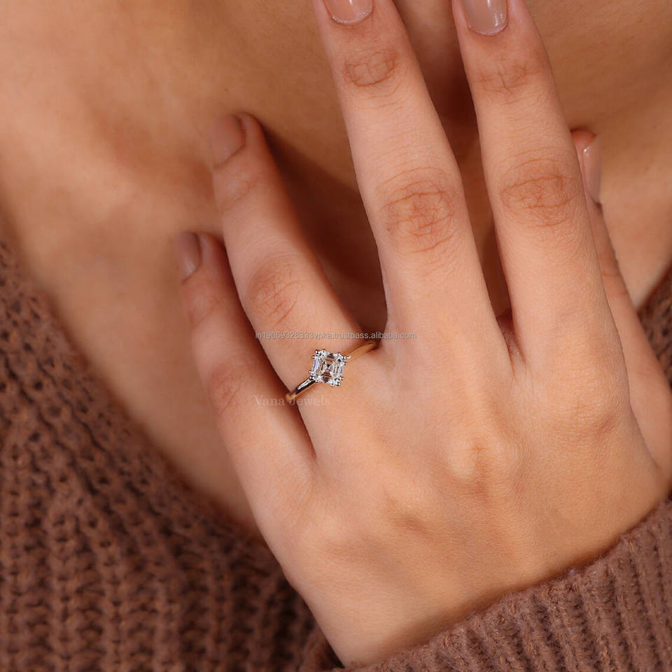 แหวนหมั้นเพชรทรงอัสเชอร์เพาะเลี้ยงในห้องปฏิบัติการ ทองคำแท้ 10k รับรองโดย IGI จาก Vana Jewels สำหรับงานแต่งงานหรือวันครบรอบที่เรียบง่าย