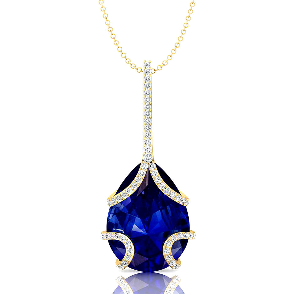 จี้พลอยแซฟไฟร์สีฟ้าขนาด18K ประดับด้วยเพชรสีขาวเหลืองทองประดับด้วยเพชรสีขาวแท้ขายส่งในห้องปฏิบัติการ