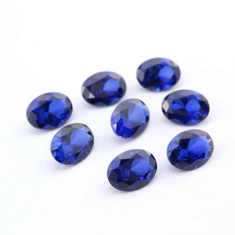 หินแซฟไฟร์พลอยรูปวงรีสำหรับห้องปฏิบัติการอัญมณีสีฟ้าพลอยเจียระไนแบบหลวมสำหรับทำเครื่องประดับขนาดเทียบขนาด