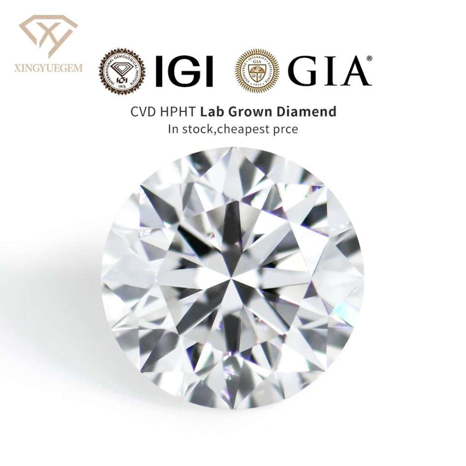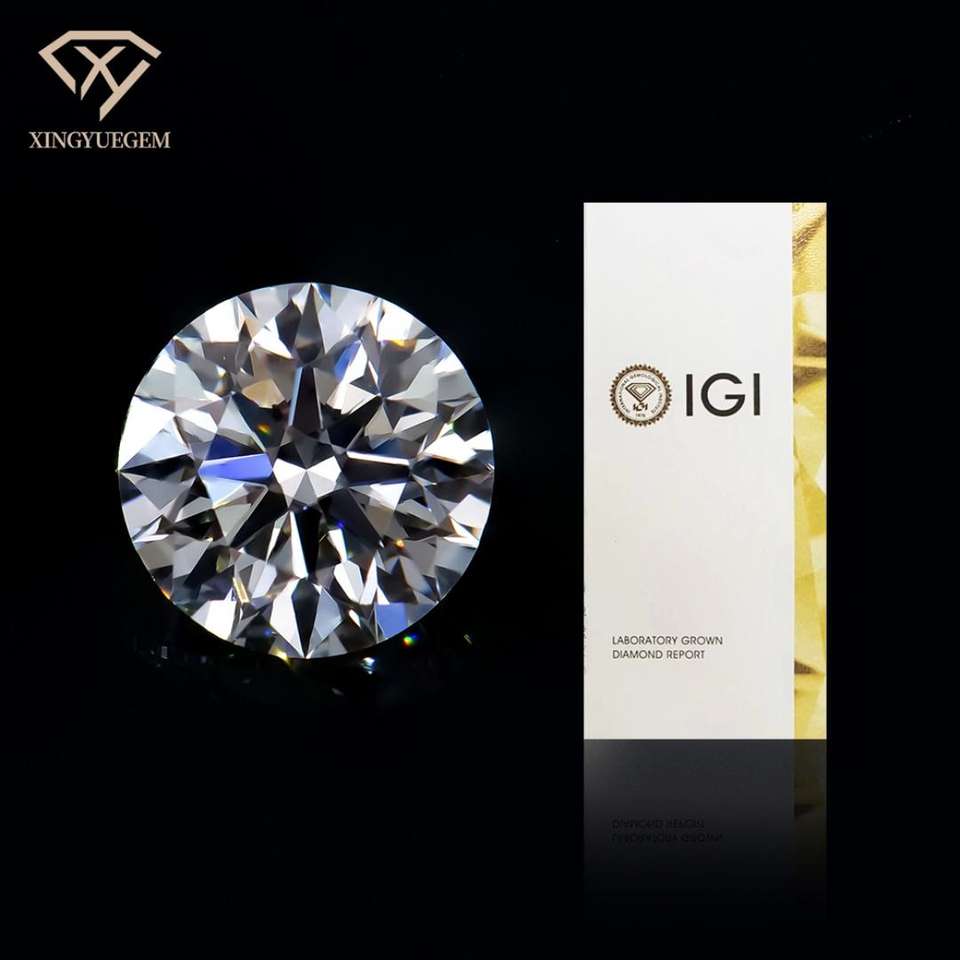 เพชรกลม CVD ผลิตในห้องปฏิบัติการ น้ำหนัก 1-5 กะรัต สี D ความสะอาด VVS1 ได้รับการรับรองจาก IGI เจาะด้วยเลเซอร์สำหรับทำเครื่องประดับ