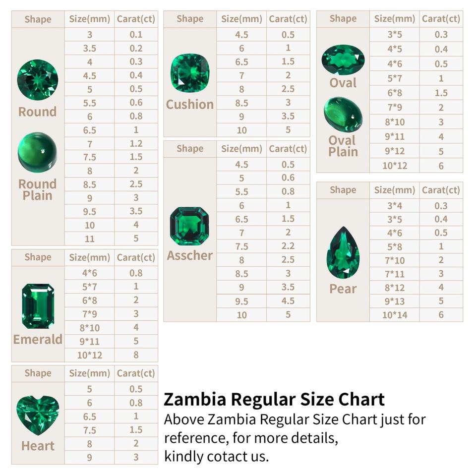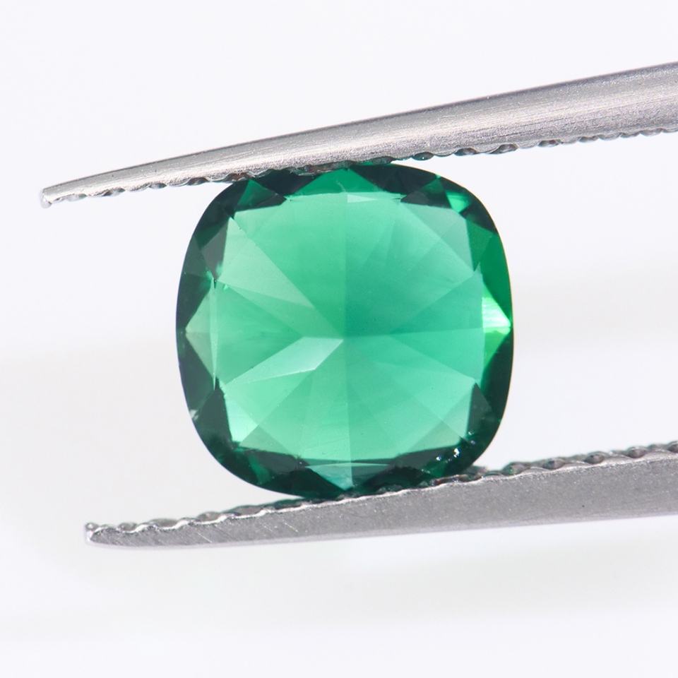 พลอยสีเขียวทรงอัชเชอร์และทรงคุชชั่น ผลิตในห้องปฏิบัติการจากประเทศโคลอมเบียและแซมเบีย สำหรับทำเครื่องประดับ ผ่านการอบความร้อนเพื่อการปรับแต่ง