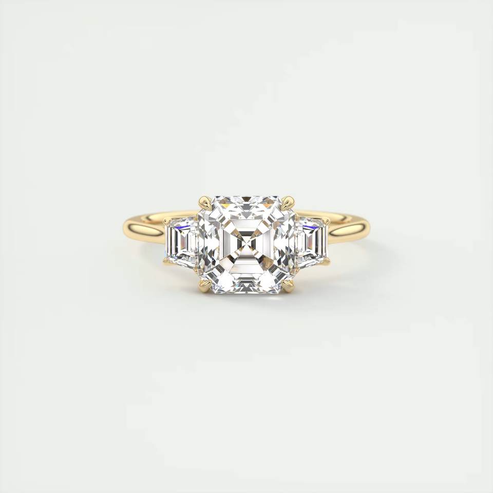 แหวนหมั้นไตรภาคทรงสี่เหลี่ยมคางหมูสำหรับงานแต่งงานงานสร้างเพชร14K/18K แข็งทองสำหรับห้องปฏิบัติการ