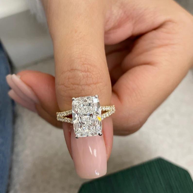 แหวนเพชรแบบตัดเป็นเบาะสำหรับใช้ในห้องทดลองทำจากเงินสเตอริง925แหวนหมั้น4.35 CT IGI ได้รับการรับรองจาก VVS2