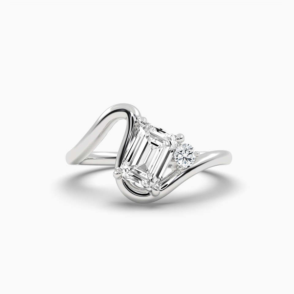 แหวนเพชรเลี้ยงในห้องปฏิบัติการ ทองคำแท้ 14K/18K น้ำหนัก 1.13 กะรัต ทรงมรกต ดีไซน์ไขว้ แหวนหมั้น ดีไซน์ไม่สมมาตร แหวนโค้ง Toi et Moi