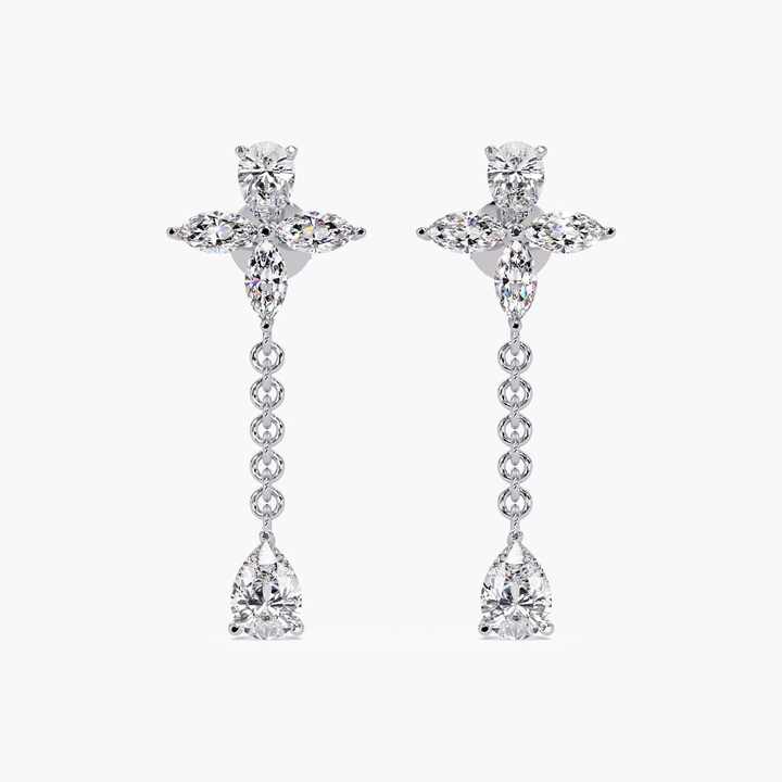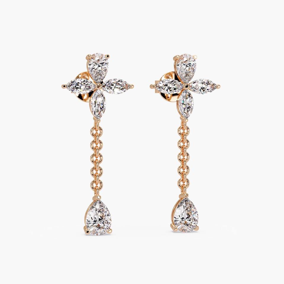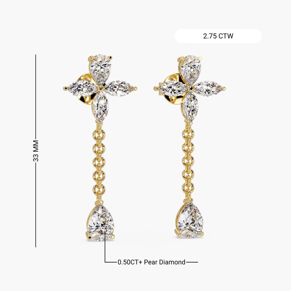 ต่างหูเพชรเลี้ยงในห้องปฏิบัติการ ทอง 14K 2.75 กะรัต รูปทรงมาร์คีส์ ดีไซน์ดอกไม้ ประดับโซ่รูปหยดน้ำ สวยสง่างาม เหมาะสำหรับใส่ทุกวัน งานแต่งงาน และงานเลี้ยง