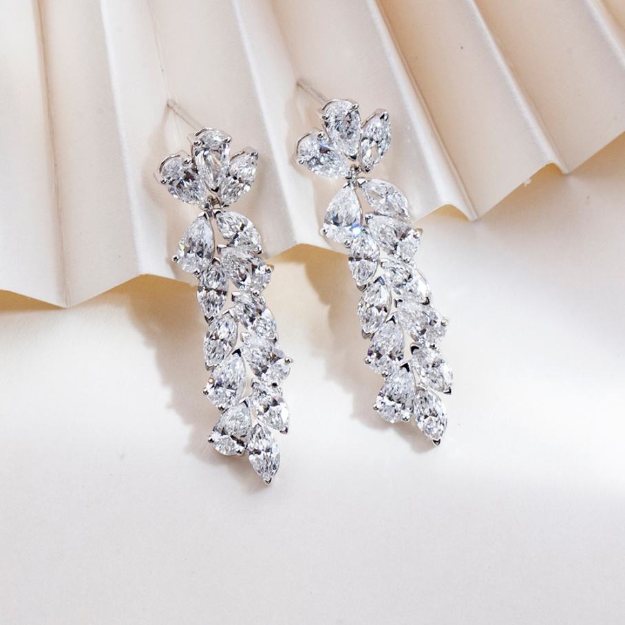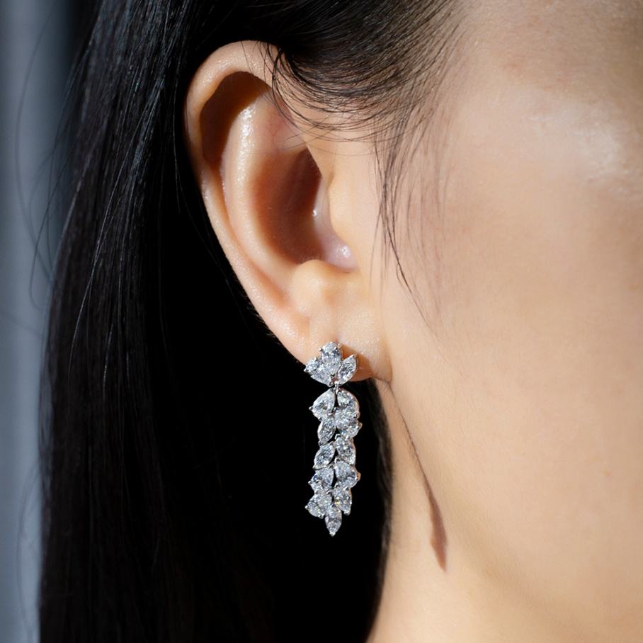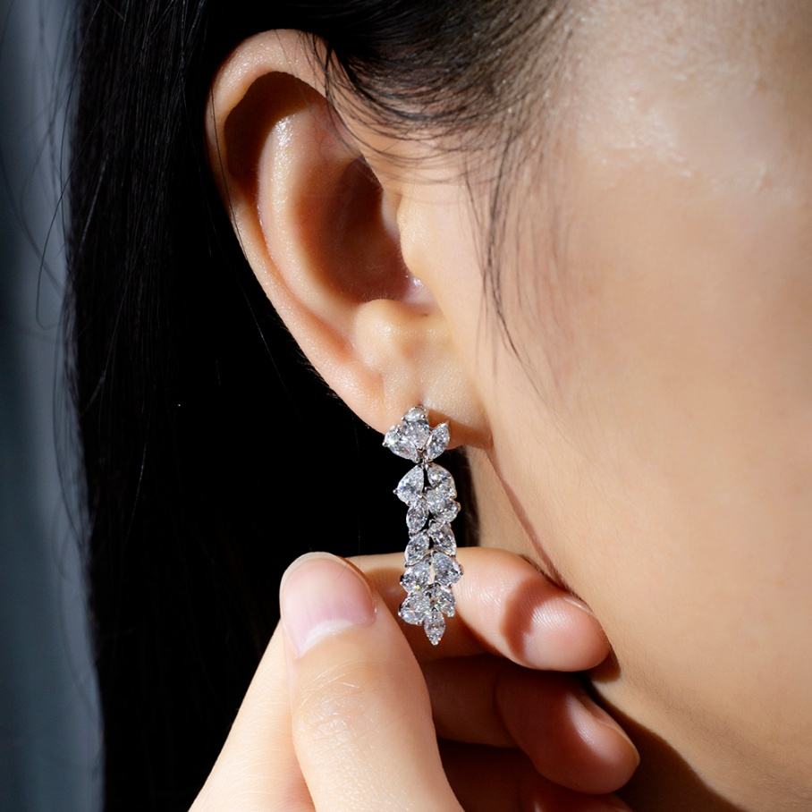 ต่างหูเพชรเลี้ยงในห้องปฏิบัติการ ทอง 18k ต่างหูแบบสั่งทำ ต่างหูแบบติดหู ต่างหูสำหรับผู้หญิง