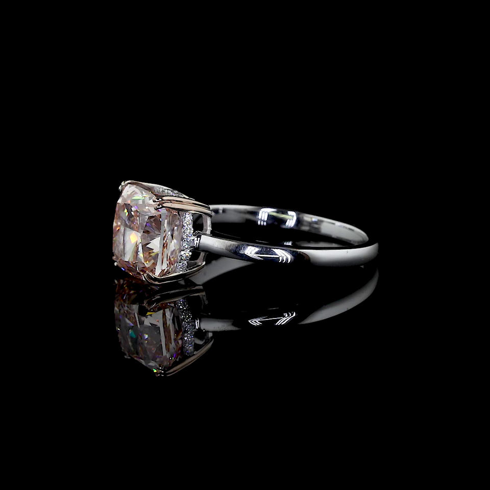 แหวนเพชรเลี้ยงในห้องปฏิบัติการ ทอง 18k 3.5 กะรัต สีชมพู ทรงสี่เหลี่ยมแบบคุชชั่น แหวนหมั้นเพชรเลี้ยงในห้องปฏิบัติการ