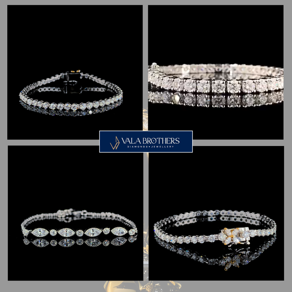 เพชรเลี้ยงในห้องปฏิบัติการ 2.05 กะรัต สี E ความสะอาด VS1 รูปทรงลูกแพร์ สร้อยข้อมือแบบเทนนิส เงินแท้ 925 ชุบทอง แบรนด์ Vala Brothers สำหรับผู้หญิง