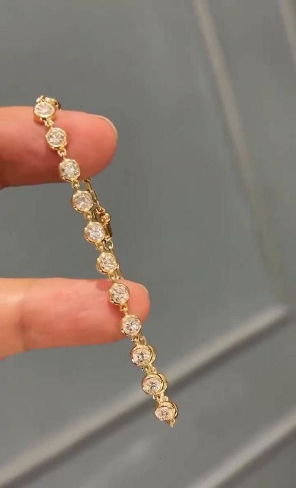 Lab Grown Diamond 2mm Round Cut 14K Solid Gold Bracelet Bezel Set For Womens Jewelry Fine Engagement Proposal Gift