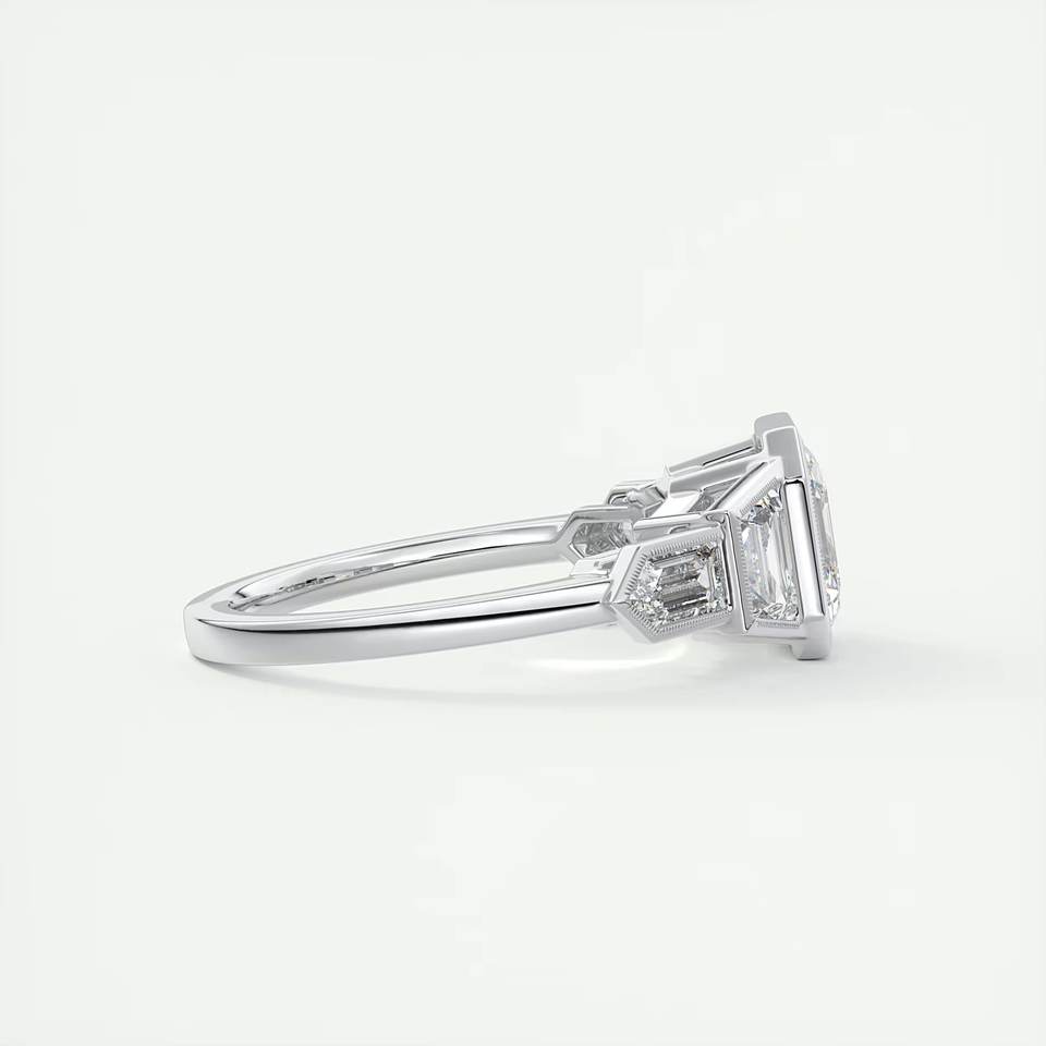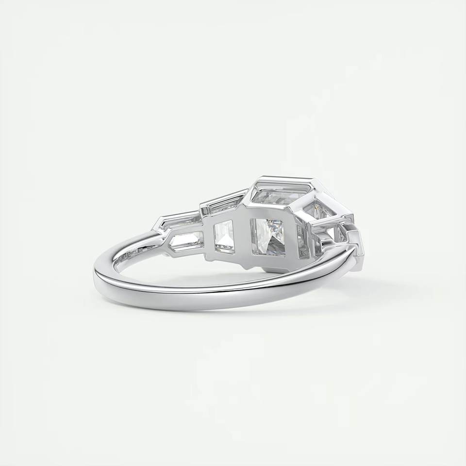 แหวนเพชรสำหรับงานแต่งสีขาว14K ทรงสี่เหลี่ยมคางหมูและกระสุนตัดตกแต่งสำหรับขายในห้องปฏิบัติการ