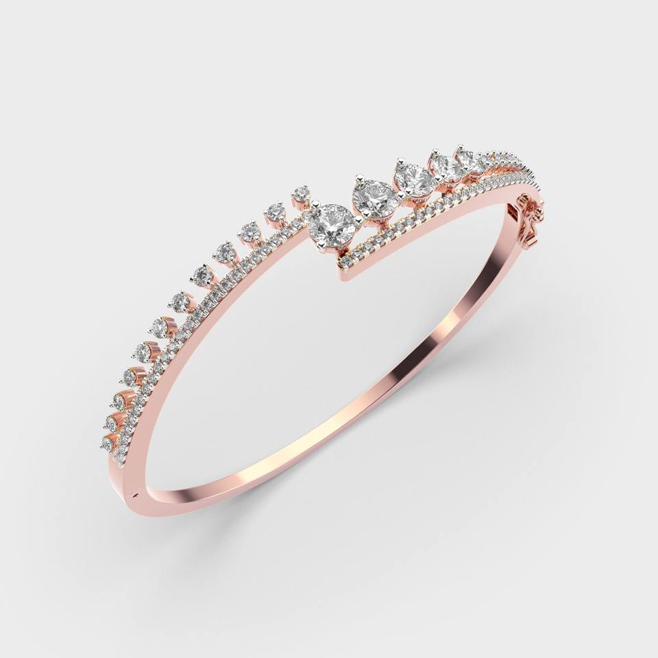 กำไลข้อมือแบบเปิดทรงมงกุฎประดับเพชรเลี้ยงในห้องปฏิบัติการสำหรับผู้หญิง ทำจากทองคำ 9K โรสโกลด์/เยลโลว์โกลด์/ไวท์โกลด์ ชุบโรเดียม ได้รับการรับรองจาก IGI