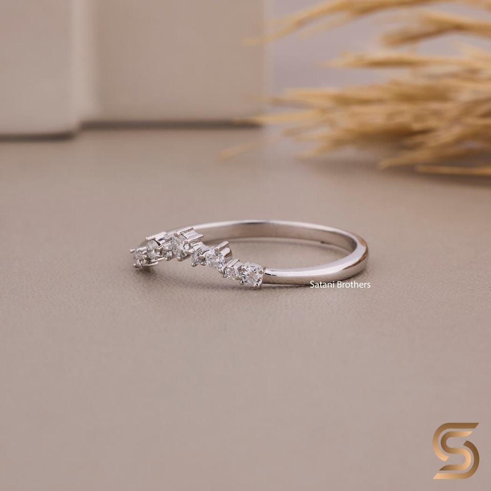 แหวนเพชรเลี้ยงในห้องปฏิบัติการทรงโค้ง รูปทรงกลม เกรด EF VS ดีไซน์เรียบหรู สำหรับงานแต่งงาน สามารถสวมซ้อนกันได้ เครื่องประดับคุณภาพสูง