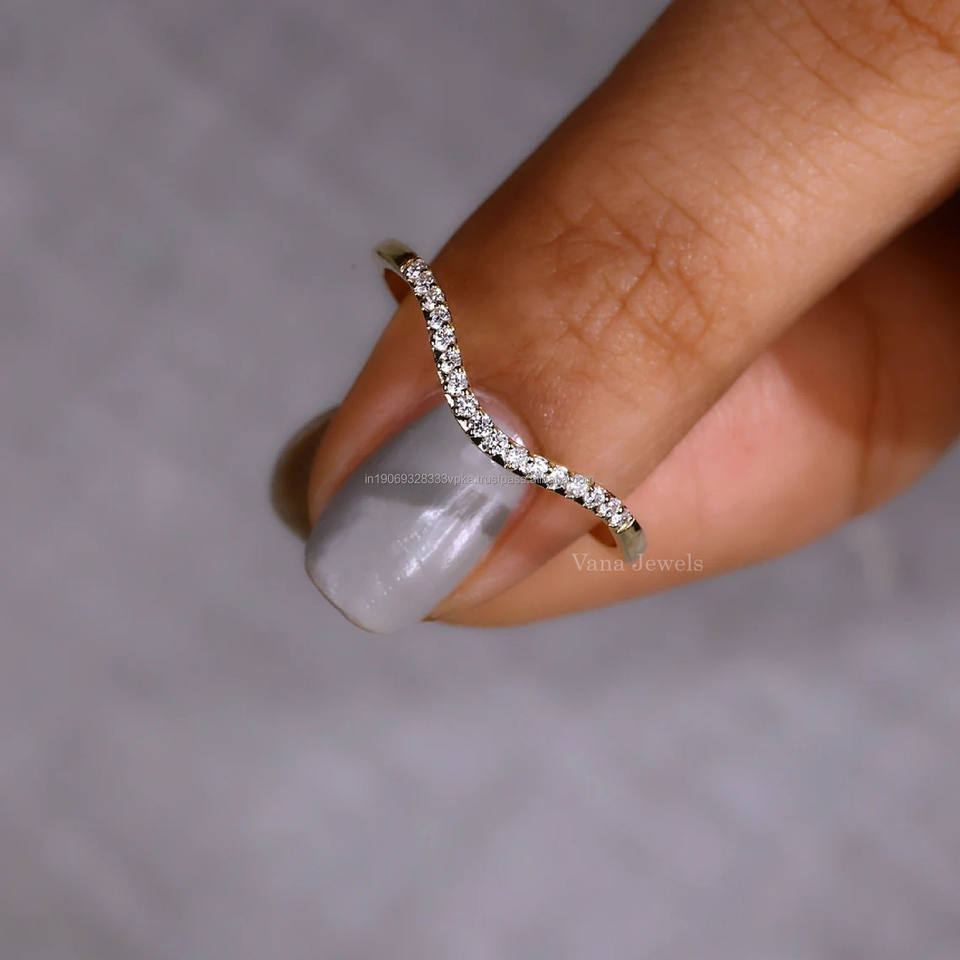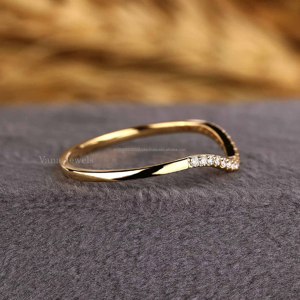 แหวนแต่งงานเพชรเพาะเลี้ยงทรงโค้งสำหรับผู้หญิง ทองคำ 10K สีเหลือง ดีไซน์เชฟรอนทันสมัย รับรองโดย IGI แหวนหมั้น แหวนครบรอบ ของขวัญสำหรับภรรยา