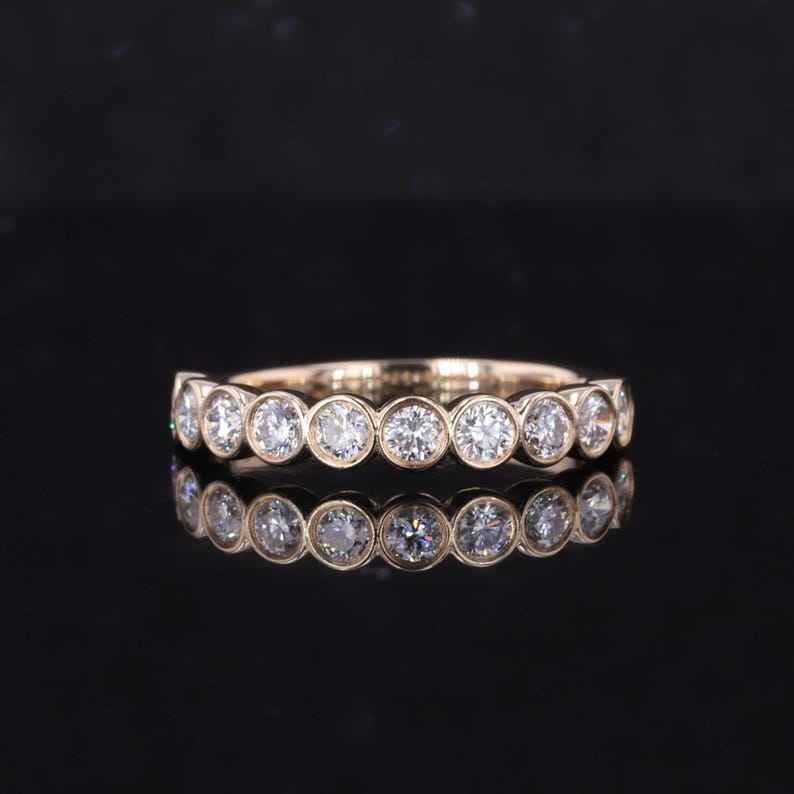แหวนเพชรเลี้ยงในห้องปฏิบัติการแบบครึ่งวงนิรันดร์ ดีไซน์เรียบหรู สำหรับผู้หญิง ทองคำแท้ 14K เหมาะสำหรับงานหมั้น งานครบรอบแต่งงาน หรือเป็นของขวัญ