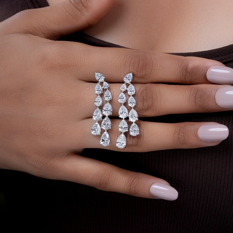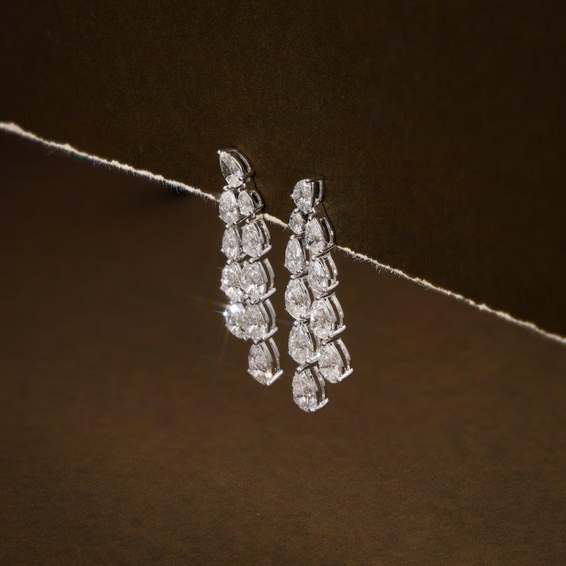 ต่างหูเพชรเลี้ยงในห้องปฏิบัติการ รูปทรงลูกแพร์ ดีไซน์แบบน้ำตก น้ำหนักรวม 10.05 กะรัต สี E-F ความสะอาด VVS2 เหมาะสำหรับเจ้าสาว เครื่องประดับชั้นดี
