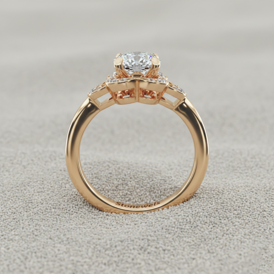 แหวนเพชรสไตล์วินเทจ Halo ดอกไม้ที่ได้รับแรงบันดาลใจ