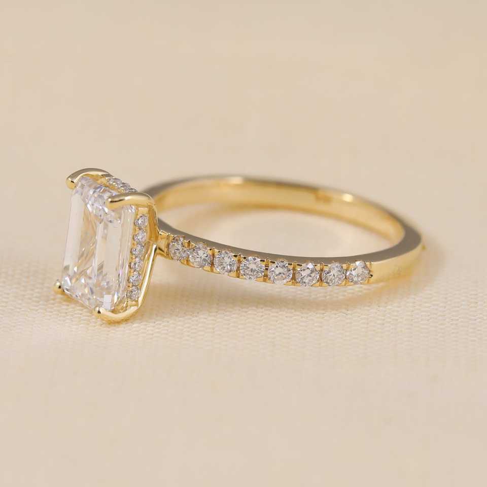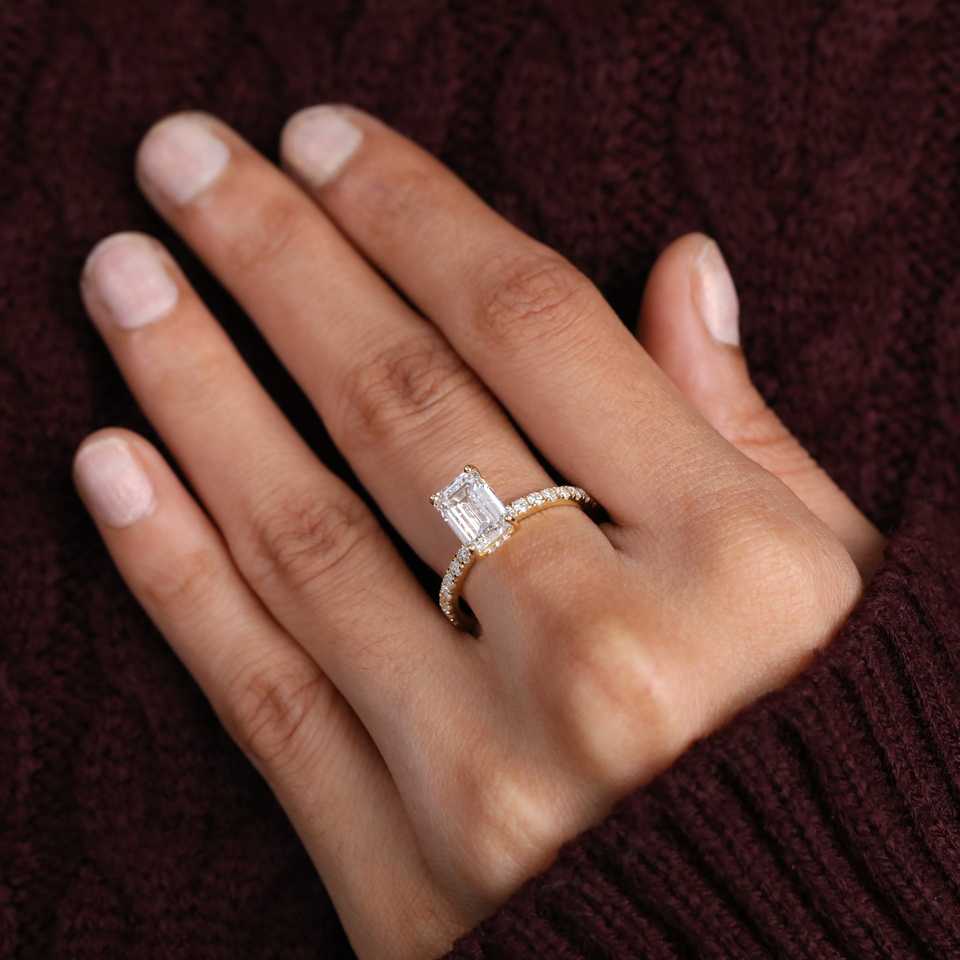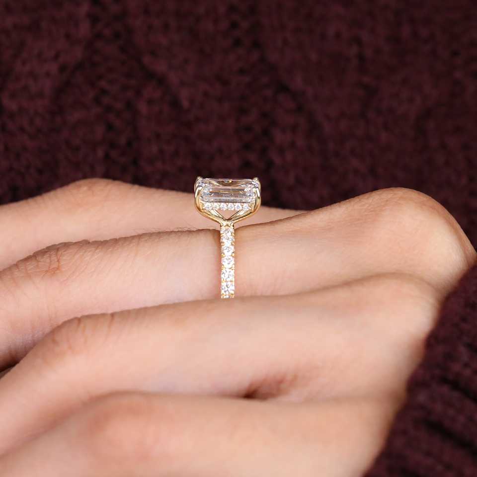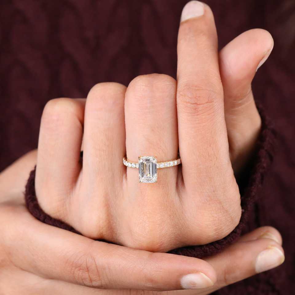 แหวนหมั้นเพชรเลี้ยงในห้องปฏิบัติการทรงกลมพร้อมวงแหวนเงินแท้ประดับเพชรแบบซ่อน 2.00 กะรัต ดีไซน์หรูหราสำหรับงานแต่งงาน