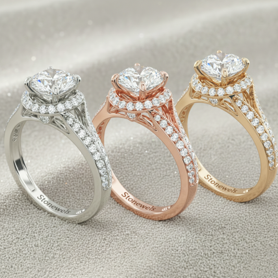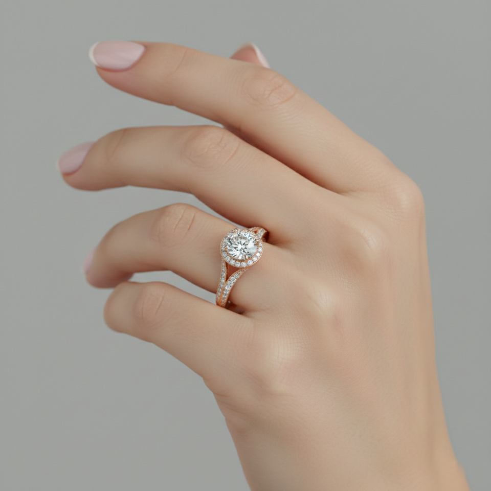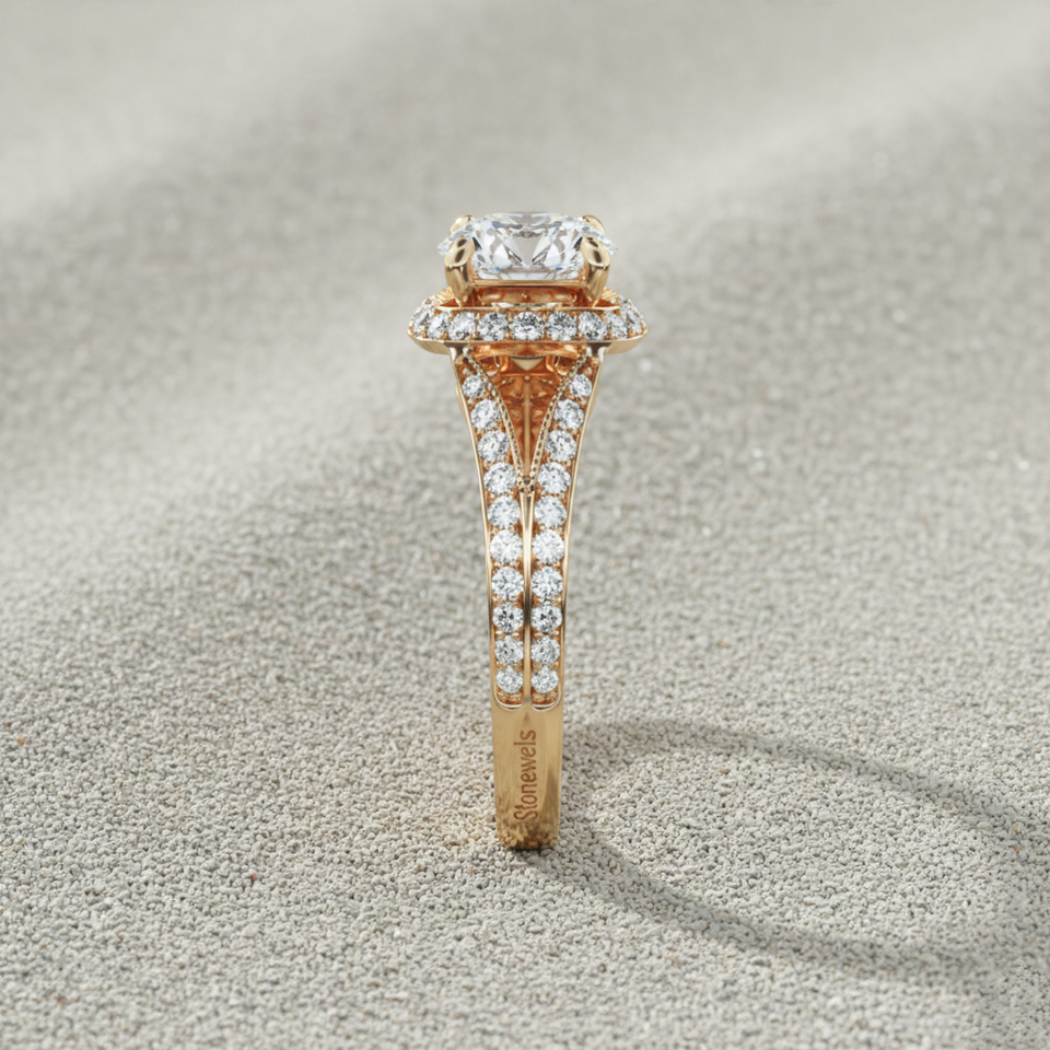 แหวนหมั้นเพชรเลี้ยงในห้องปฏิบัติการ ชุบทองคำสีกุหลาบ ทรงทิวลิป ฮาโล วินเทจคัท สำหรับผู้ผลิตเครื่องประดับแบบกำหนดเองที่ได้รับการรับรอง OEM ODM