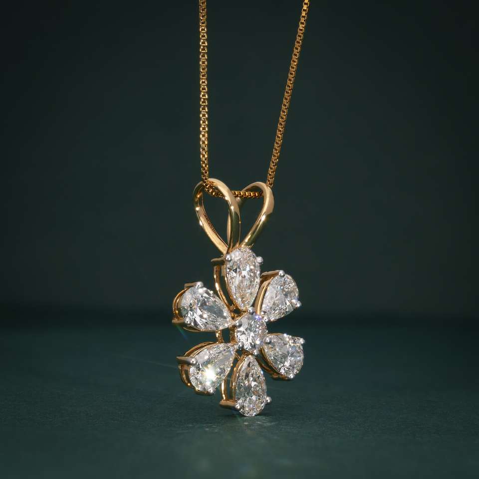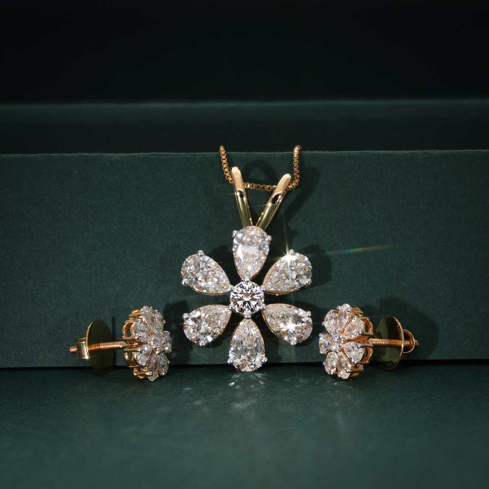 ชุดจี้และต่างหูเพชรเพาะเลี้ยงทรงลูกแพร์ ตัวเรือนทองคำ 14K สีเหลือง ประดับเพชรทรงลูกแพร์แบบฝังหนามเตย ได้รับการรับรองจาก IGI