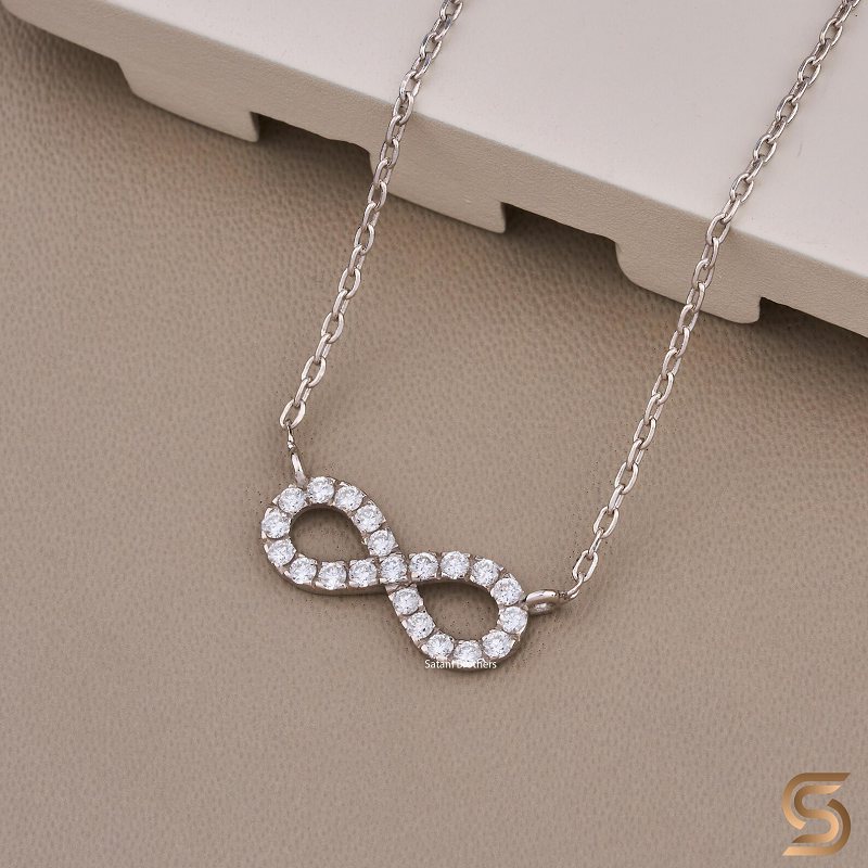 สร้อยคอเพชรเลี้ยงในห้องปฏิบัติการทรงอินฟินิตี้ ทองคำขาว 14K | จี้หินอินฟินิตี้ 21 เม็ด | สร้อยคอเพชรแบบมินิมอล | พี่น้องซาตานี