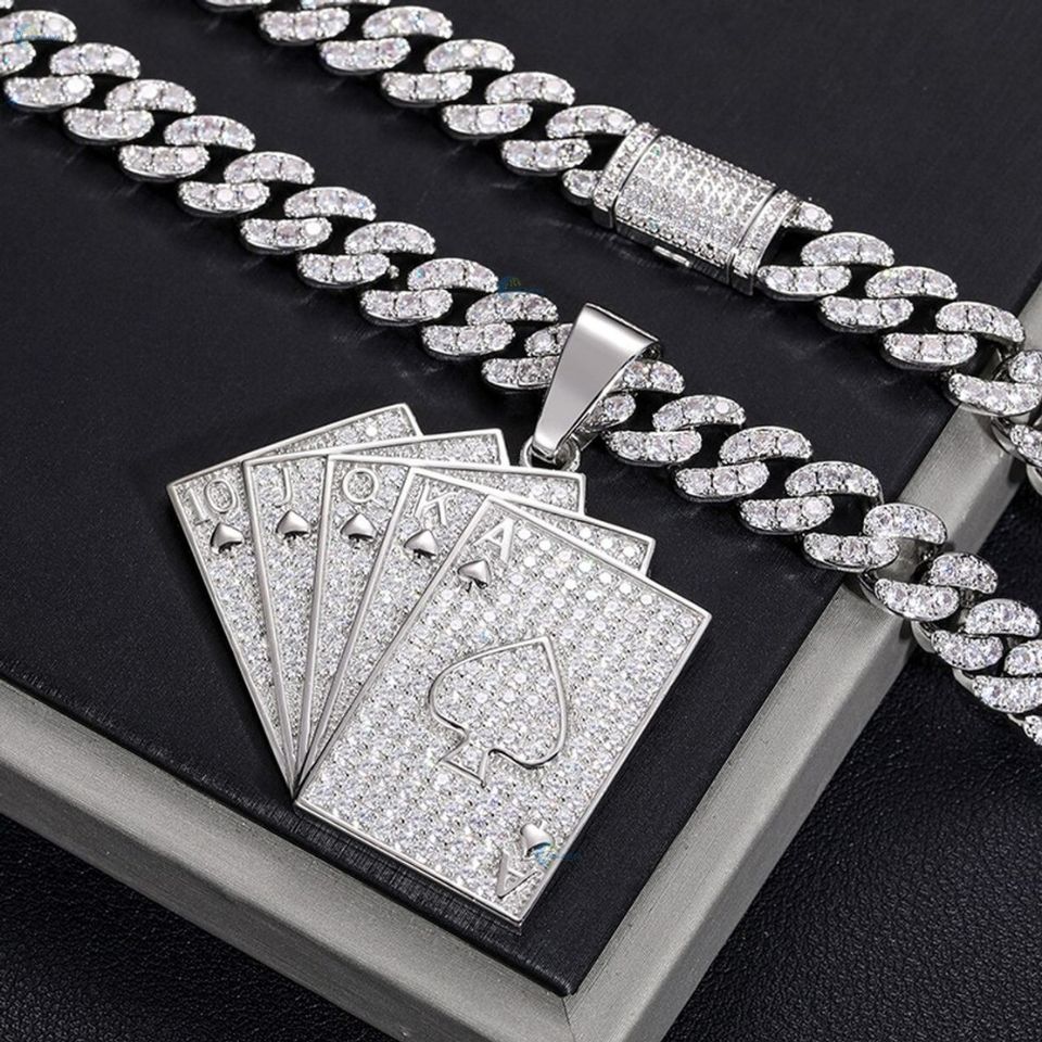 จี้เพชรเลี้ยงในห้องปฏิบัติการรูปไพ่เอซของสเปด ประดับเพชรเต็มตัว สไตล์ฮิปฮอป สำหรับผู้ชาย