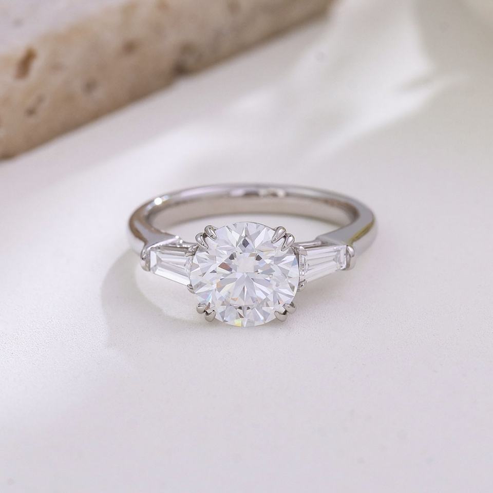 แหวนเพชรเพาะเลี้ยงในห้องปฏิบัติการ แพลตตินัม PT950 ทรงกลม สำหรับงานแต่งงาน ใส่ได้ทุกวัน ไอเดียของขวัญ เครื่องประดับชั้นดี สามารถปรับแต่งได้ แบบกรงเล็บคู่