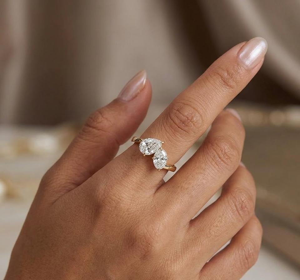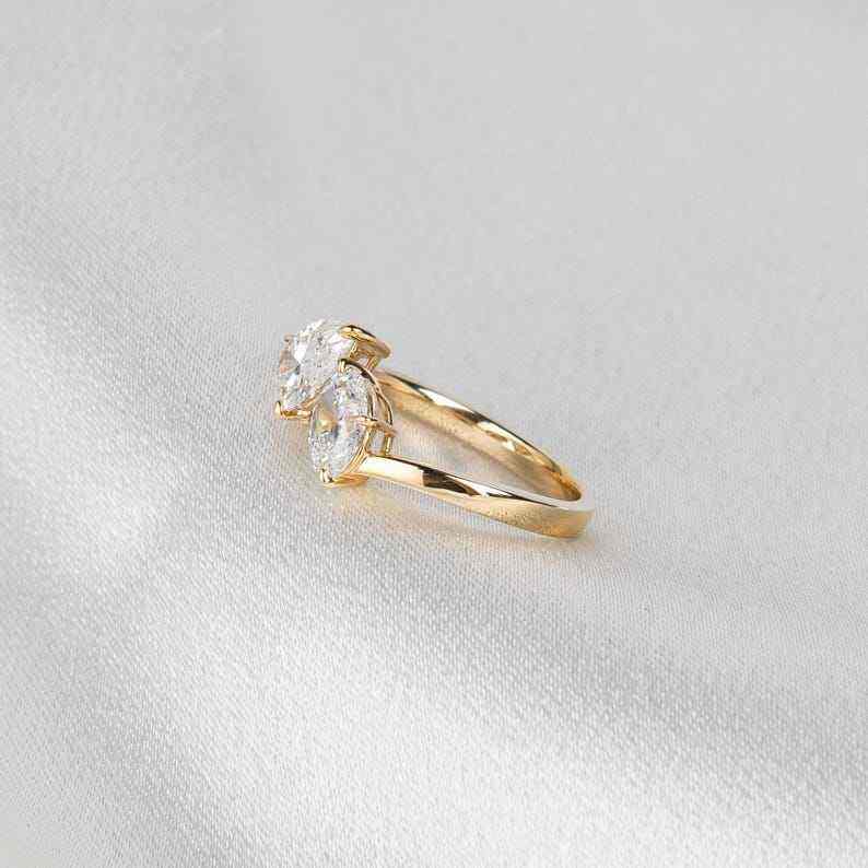 แหวนเพชรเพาะเลี้ยงในห้องปฏิบัติการ ทองคำเหลือง 14K แหวนทองคำรูปทรงลูกแพร์และวงรี แหวน Toi Et Moi แหวนหมั้น แหวนแบบ Bypass แหวนสองเม็ด