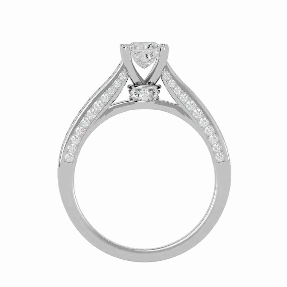 แหวนหมั้นทองคำขาวเพาะเลี้ยงในห้องปฏิบัติการ ประดับเพชรทรงบริลเลียนต์คัต รับรองโดย IGI ตัวเรือนทอง 14K แบบฝังหนามเตย โลโก้สั่งทำได้ คอลเลคชั่นสำหรับสุภาพสตรี