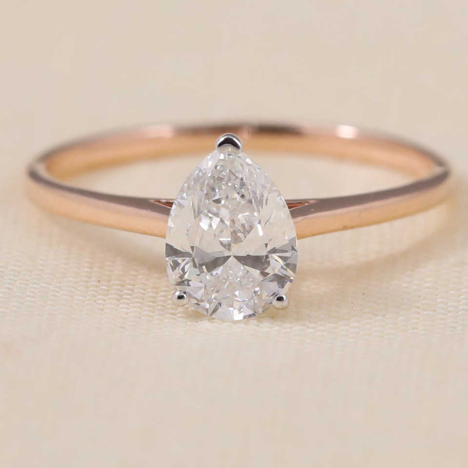 แหวนหมั้นเพชรเพียวร์คัทเพาะเลี้ยงในห้องปฏิบัติการ ทำด้วยมือในนิวซีแลนด์ เงินสเตอร์ลิง/แพลตตินัม ความใส VS1