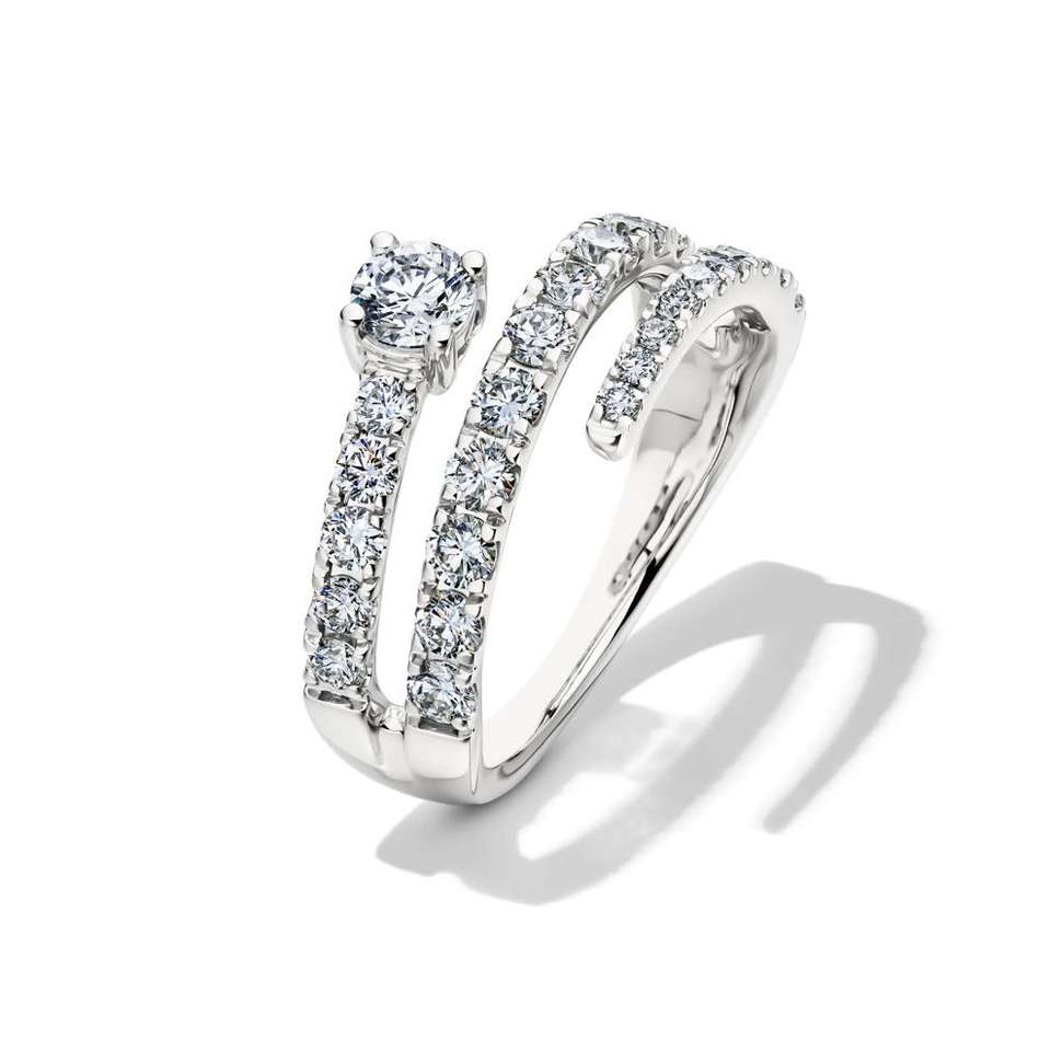 แหวนเพชรเพาะเลี้ยงทรงเกลียว 1.25 กะรัต ประดับเพชรแบบพาเว่ ทอง 14K ชุบโรเดียม รับรองโดย IGI ของขวัญสุดหรูสำหรับงานหมั้นและวันครบรอบ