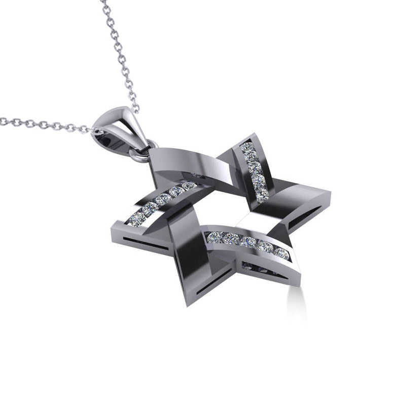 จี้เพชรรูปดาวหกแฉกเพาะเลี้ยงในห้องปฏิบัติการ ทองคำขาว 14K ประดับด้วยเพชร 15 เม็ด ความใส VVS น้ำหนัก 0.23 กะรัต จี้และชาร์มคุณภาพพรีเมียม