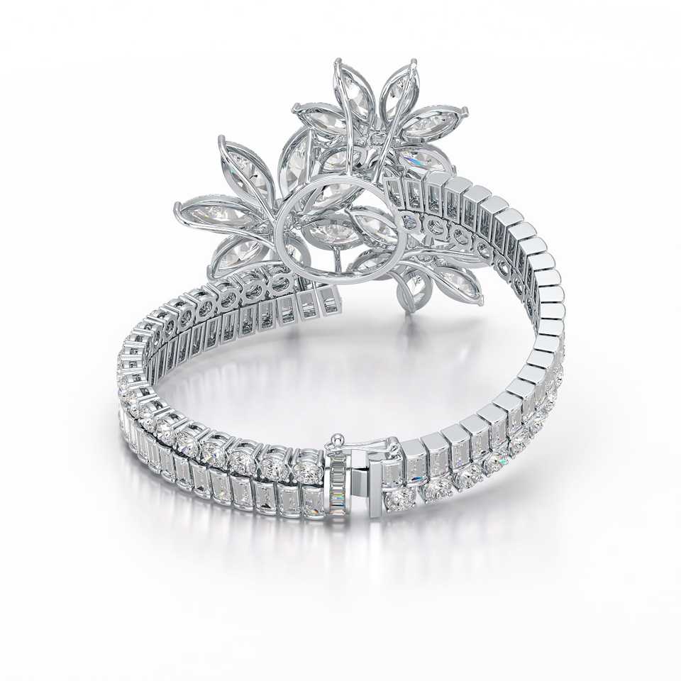 สร้อยข้อมือเพชรเทียม CVD รับรองโดย IGI ระดับ VVS ขนาด 2 มม. - 6.5 มม. ทรงกลม ประดับเพชรเต็มเส้น สร้อยเงินแท้ 925