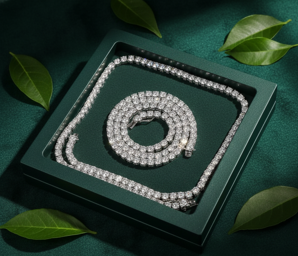 สร้อยคอลูกเทนนิสประดับเพชรสำหรับห้องทดลองได้รับการรับรอง CVD IGI VVS iced OUT 925สีเงินเจียระไนแบบกลมสวยงามสำหรับทุกเพศ