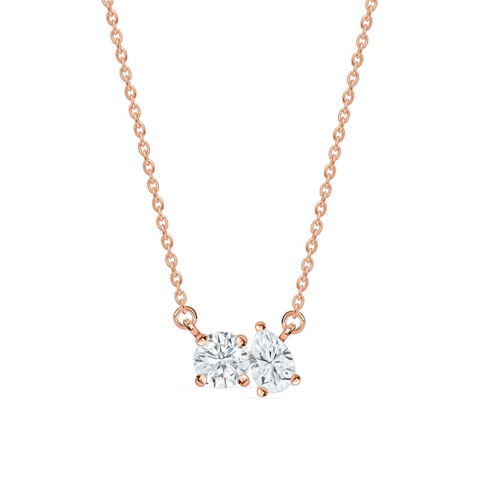 สร้อยคอเพชรเลี้ยงในห้องปฏิบัติการแบบ Toi et Moi ทองเหลือง/ทองชมพู/ทองขาว 14K เครื่องประดับเพชรที่หรูหราและมีเอกลักษณ์