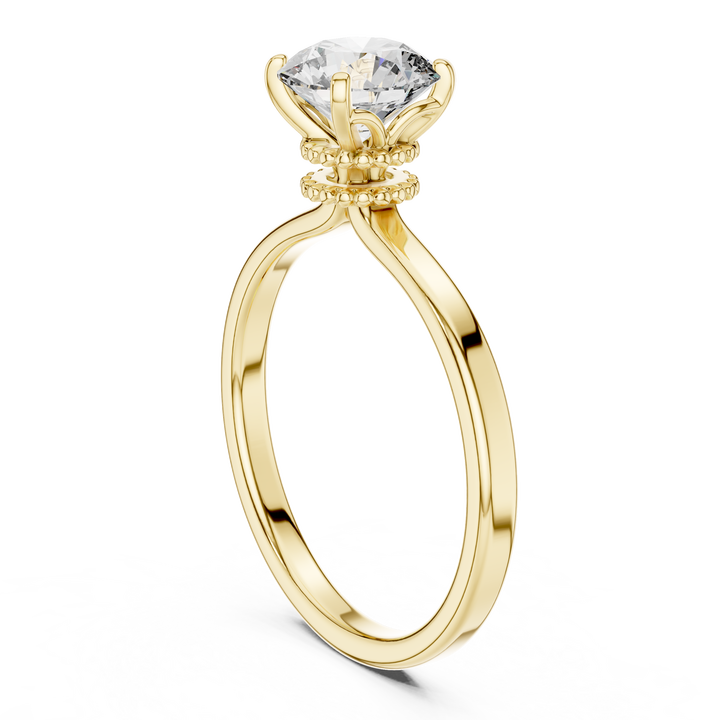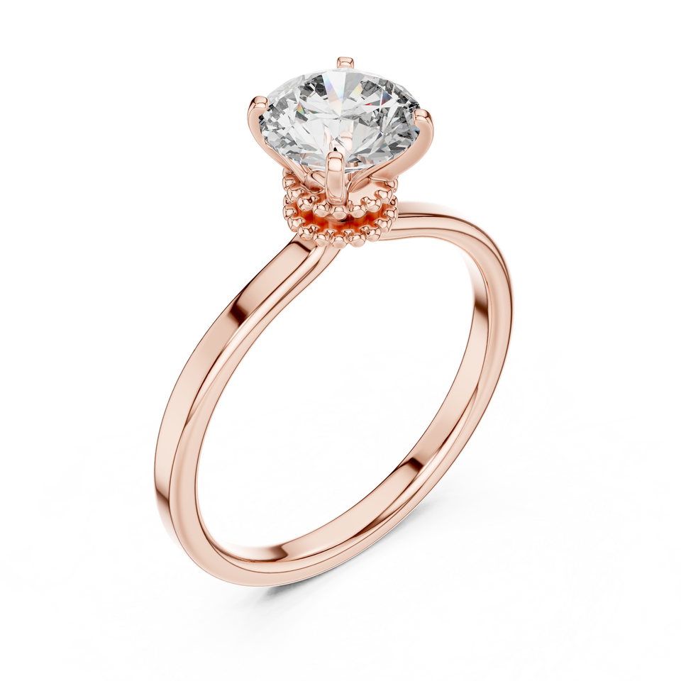แหวนเพชรเลี้ยงในห้องปฏิบัติการสไตล์วินเทจ, แหวนหมั้นเพชรเม็ดเดี่ยวทรงมงกุฎประดับลูกปัด, แหวนเพชรคลาสสิกหรูหราสำหรับเจ้าสาว