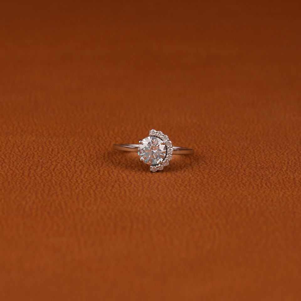 แหวนเพชรสำหรับปลูกในห้องปฏิบัติการพร้อมแหวนเพชรทรงกลมตัดด้านข้างสำหรับประดับห้องแล็บแหวนทองคำขาวสำหรับเป็นของขวัญ