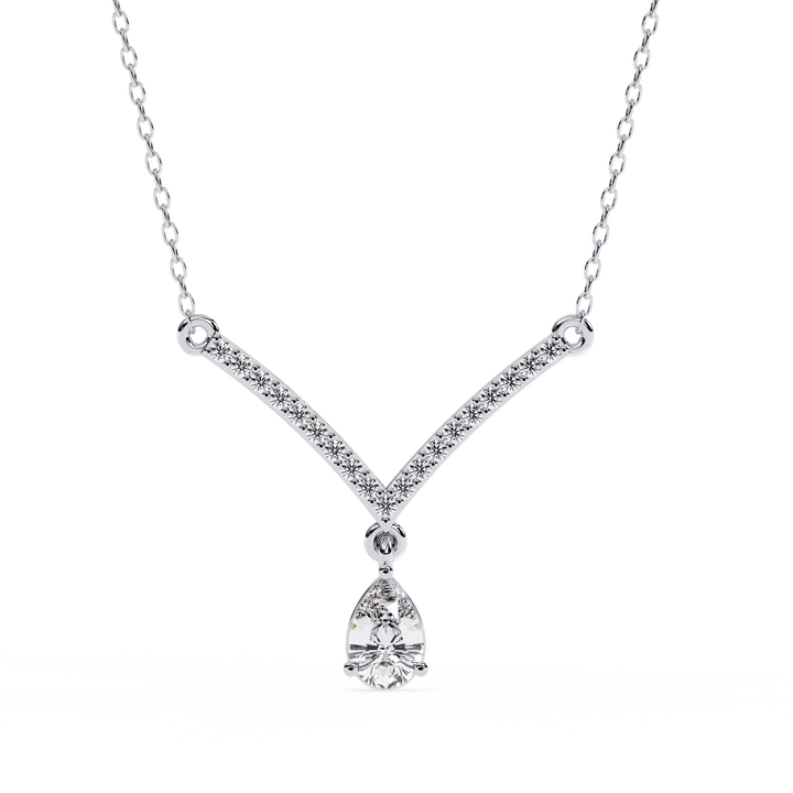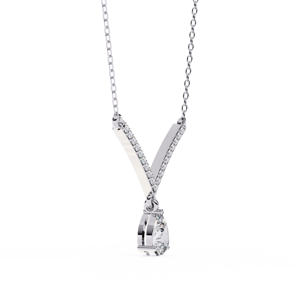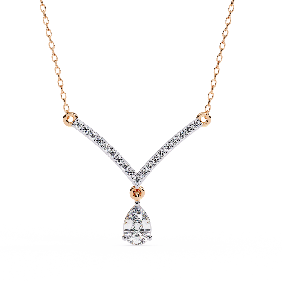 สร้อยคอเพชรเพาะเลี้ยงในห้องปฏิบัติการและเพชรธรรมชาติ รูปตัววี สำหรับวันครบรอบ