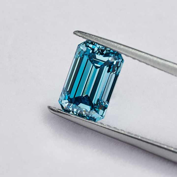 เพชรเพาะเลี้ยงทรงเอเมอรัลด์ VS1 เพชรเม็ดเดี่ยว CVD สีน้ำเงิน เพชรขัดเงา VS1 ความใสระดับ VS1 ราคาขายส่ง