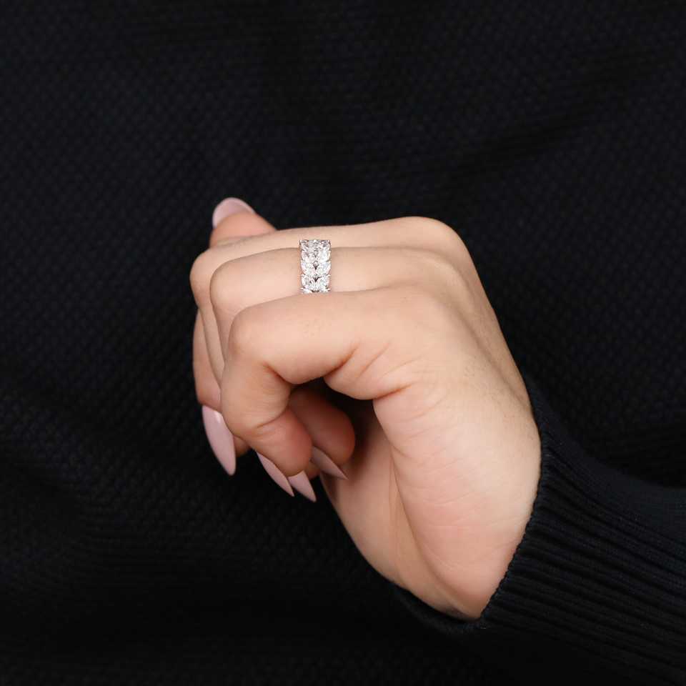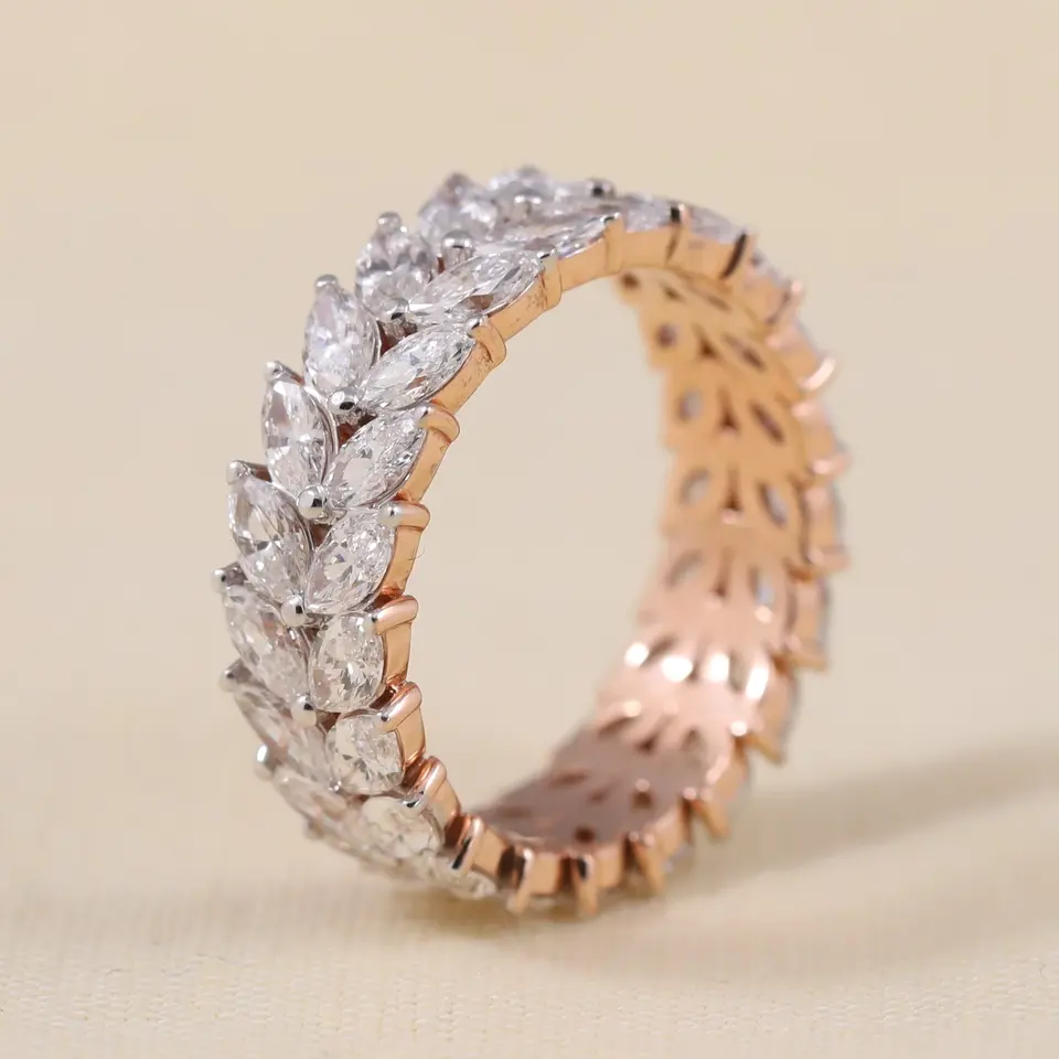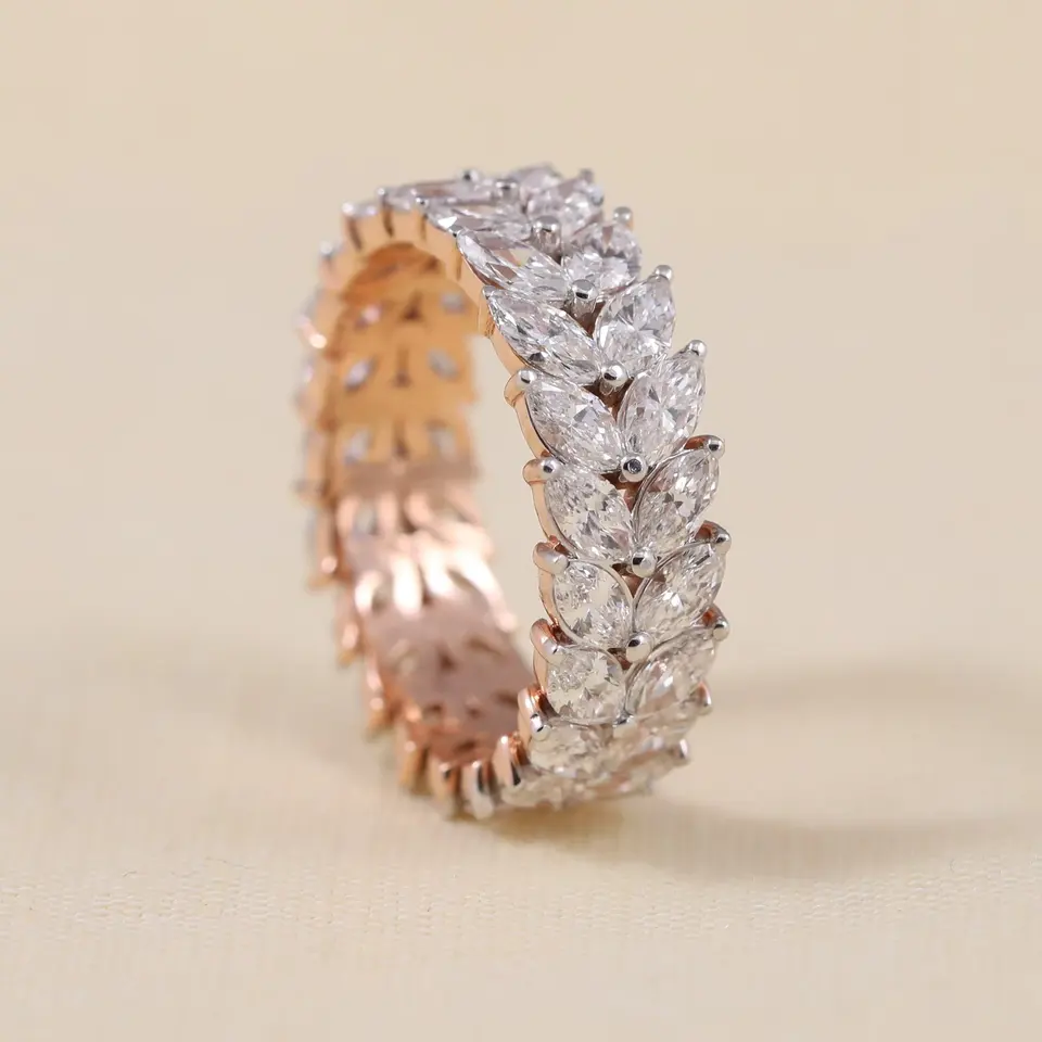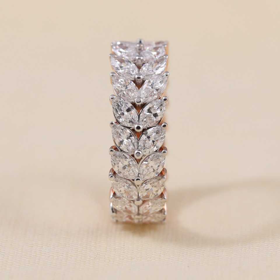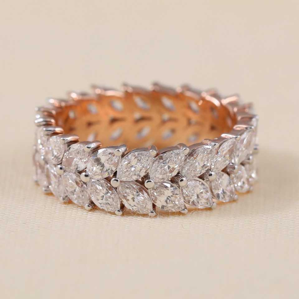 แหวนแต่งงานเพชรทรงมาร์คีส์สองแถวแบบปลูกในห้องปฏิบัติการ ดีไซน์หรูหรา รุ่น LR37060