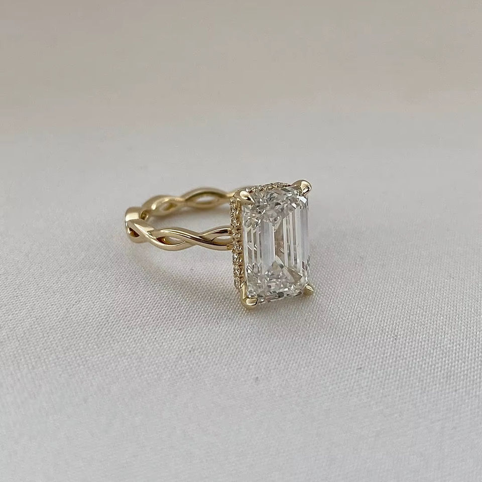 แหวนแต่งงานเพชรทรงเหลี่ยมสังเคราะห์จากห้องปฏิบัติการ ทองคำแท้ 10K 14K 18K ทองชมพู เงิน แพลตตินัม รับรองโดย IGI แหวนเพชรสังเคราะห์จากห้องปฏิบัติการ