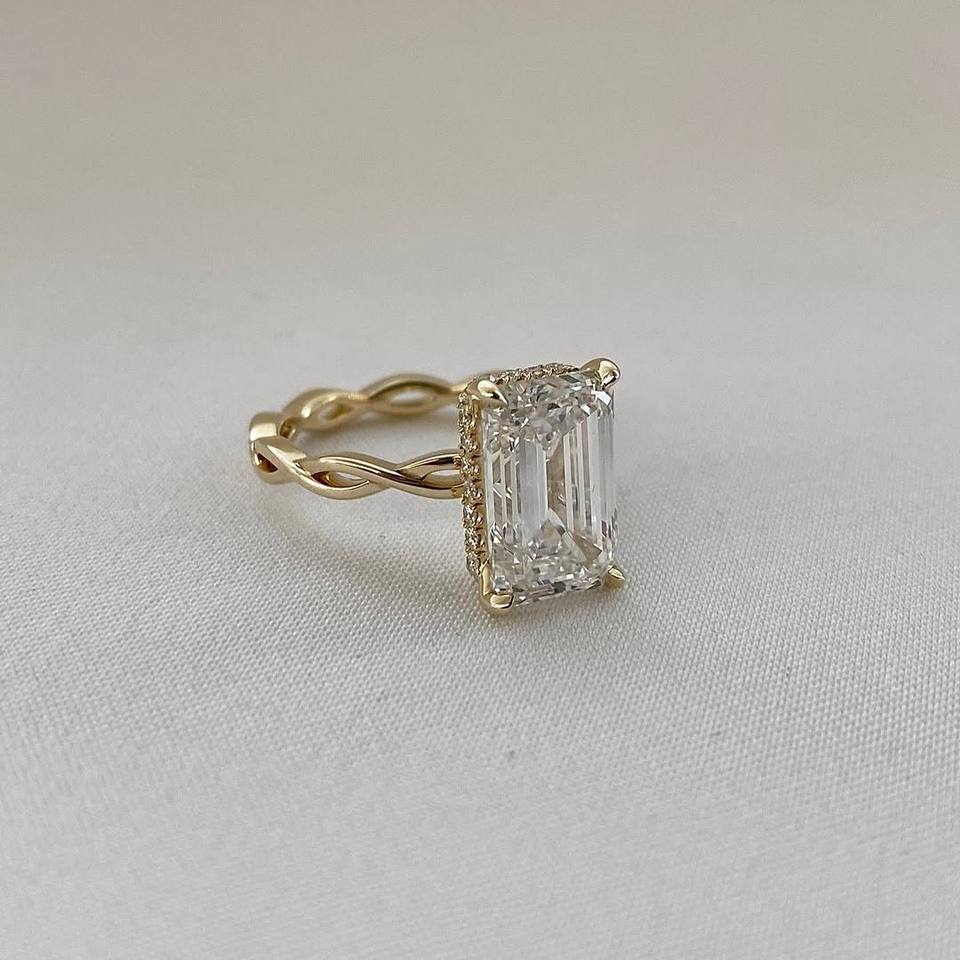 แหวนเพชรทรงเอเมอรัลด์คัทเพาะเลี้ยงในห้องปฏิบัติการ แหวนหมั้นหรูหรา ทอง 10K 14K 18K ดีไซน์เกลียว แหวนเพชรเม็ดเดี่ยว สำหรับเป็นของขวัญวันครบรอบ