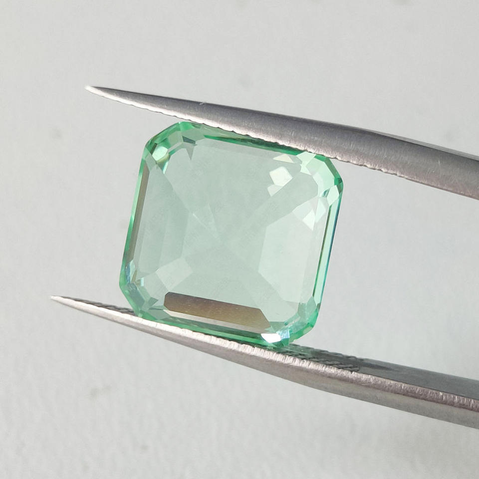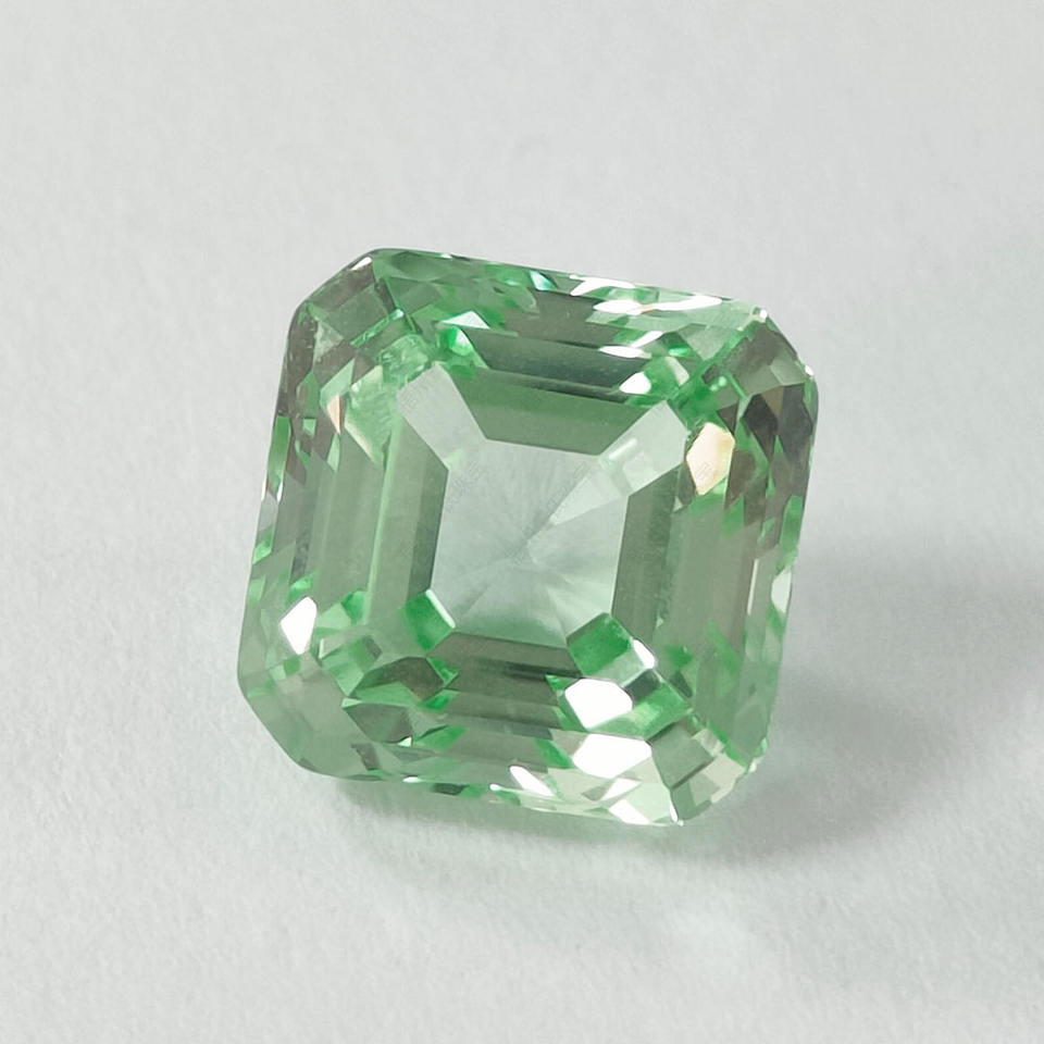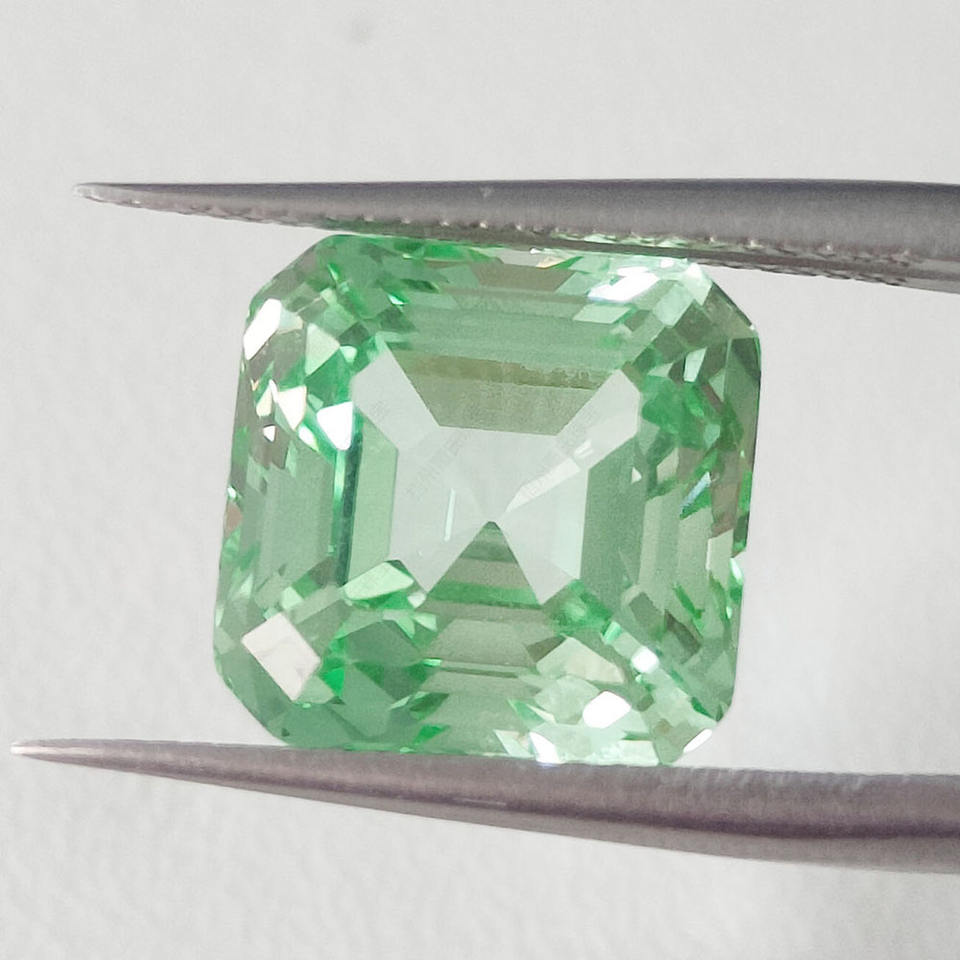 พลอยแซฟไฟร์สีเขียวเพาะเลี้ยงในห้องปฏิบัติการ ทรงแอสเชอร์ หินพลอยสังเคราะห์สำหรับทำเครื่องประดับ