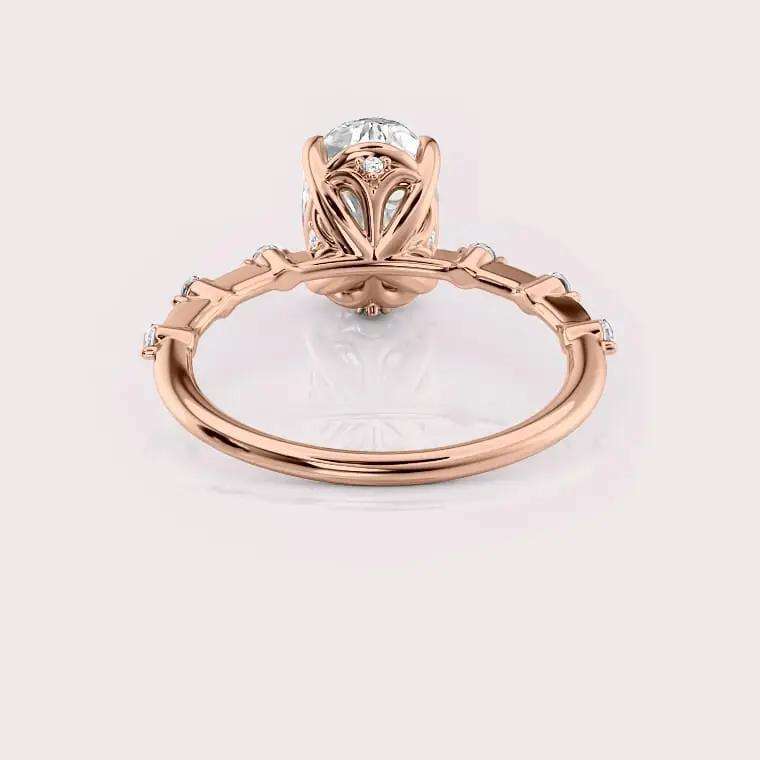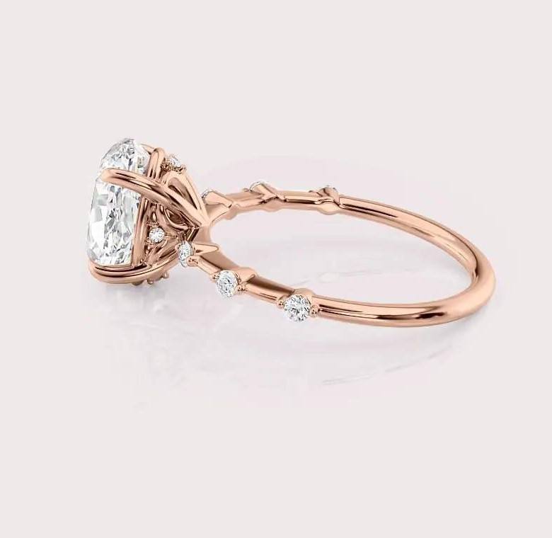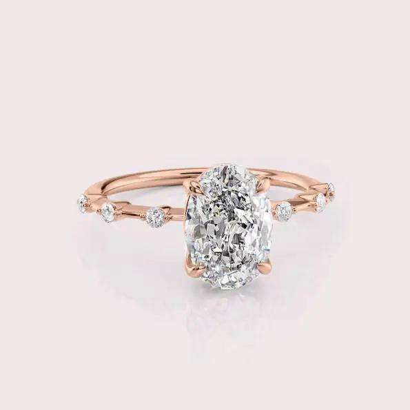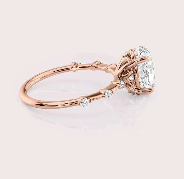 แหวนเพชรรูปไข่ทรงโอวัลที่ได้รับการรับรองจาก IGI ผลิตในห้องปฏิบัติการ ตัวเรือนทองคำขาว/ทองเหลือง/ทองชมพู 9 กะรัต ดีไซน์หรูหราแบบหนามเตย สำหรับงานแต่งงานและงานหมั้น