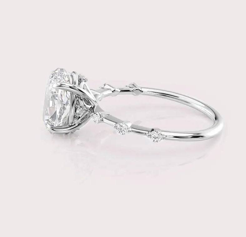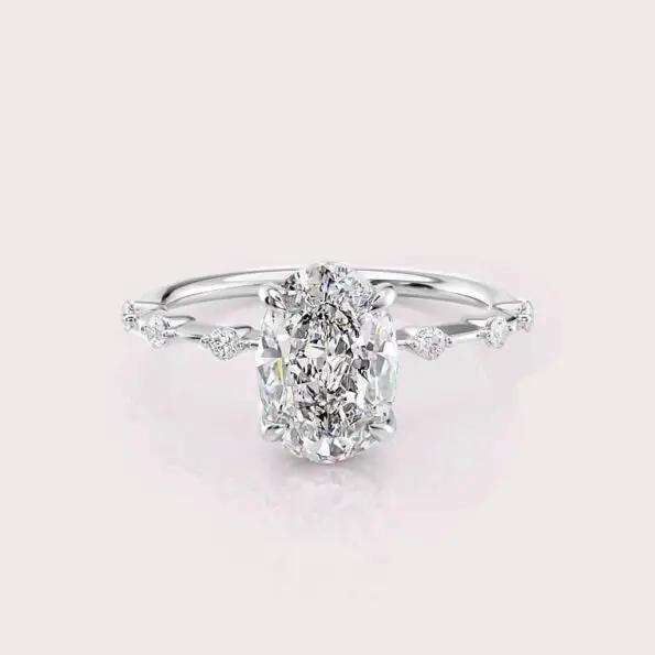 แหวนเพชรรูปไข่ทรงโอวัลที่ได้รับการรับรองจาก IGI ผลิตในห้องปฏิบัติการ ตัวเรือนเงินแท้ 925 ชุบโรเดียม เครื่องประดับหรูหราสำหรับงานแต่งงานและงานหมั้น