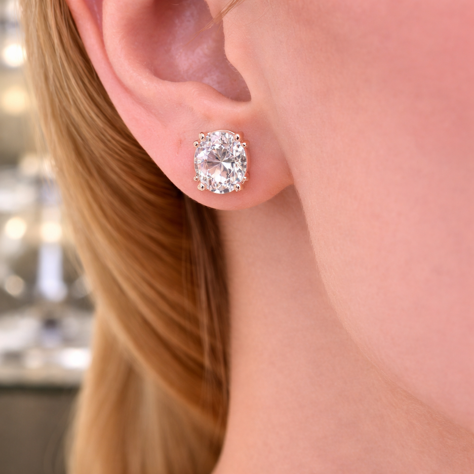 ต่างหูเพชรรูปไข่เพาะเลี้ยงในห้องปฏิบัติการ ขนาด 5.00x4.00 มม. (น้ำหนักรวม 0.75 กะรัต) ทำจากทอง 14K / 18K / 22K และแพลตตินัม – ตัวเรือนแบบคลาสสิก
